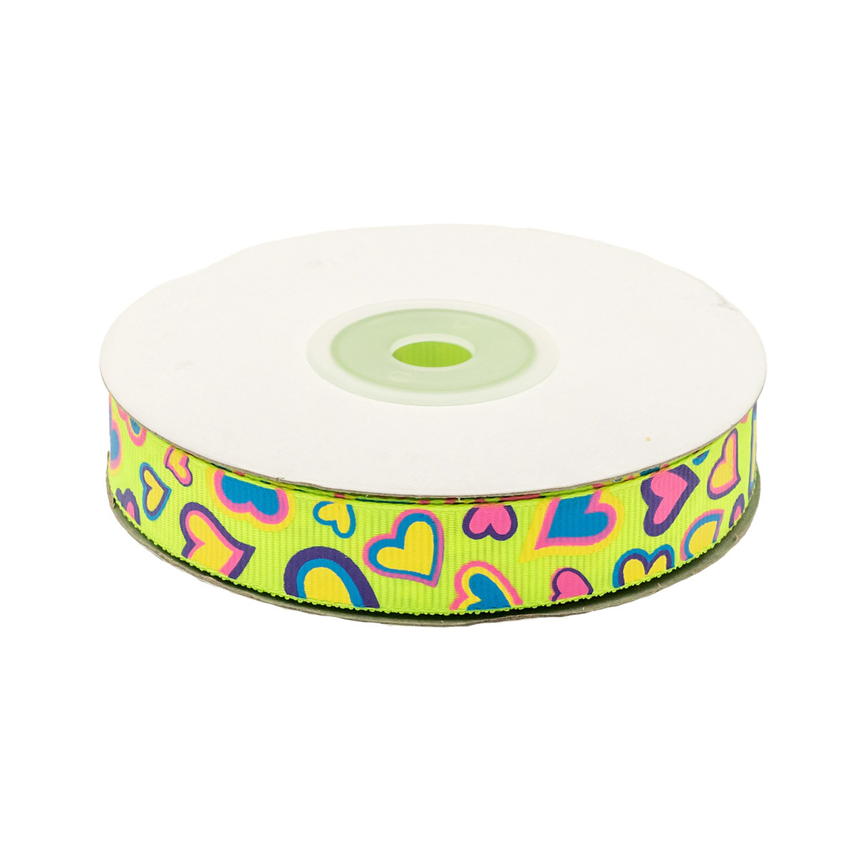 Лента репсовая (в рубчик) Сердца 1,5см*22.86 м (желтый неон)