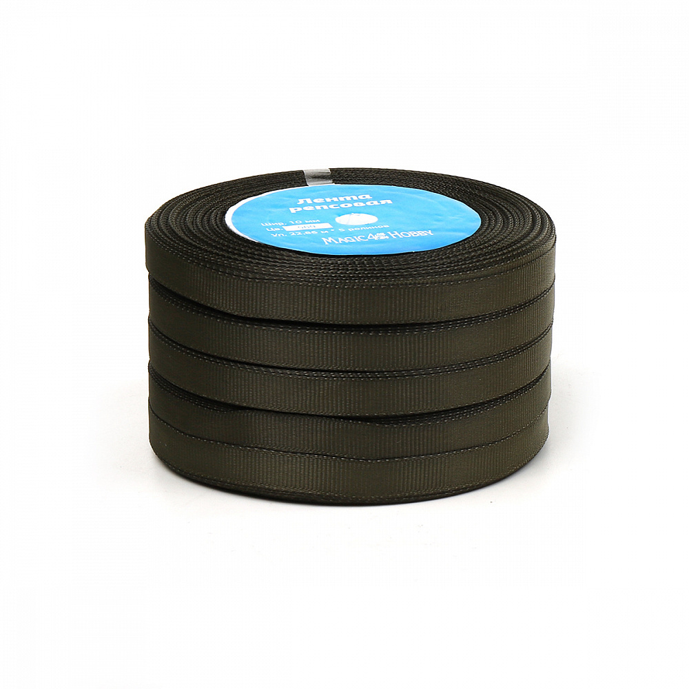 Лента репсовая (в рубчик) 10.0 мм, цв. 569 хаки For Hobby 5 шт по 22.86м (±1м)