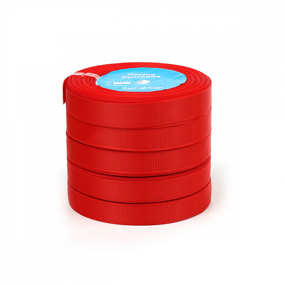 Лента репсовая (в рубчик) 15.0 мм, цв. 235 класс.красный For Hobby 5 шт по 22.86м (±1м)