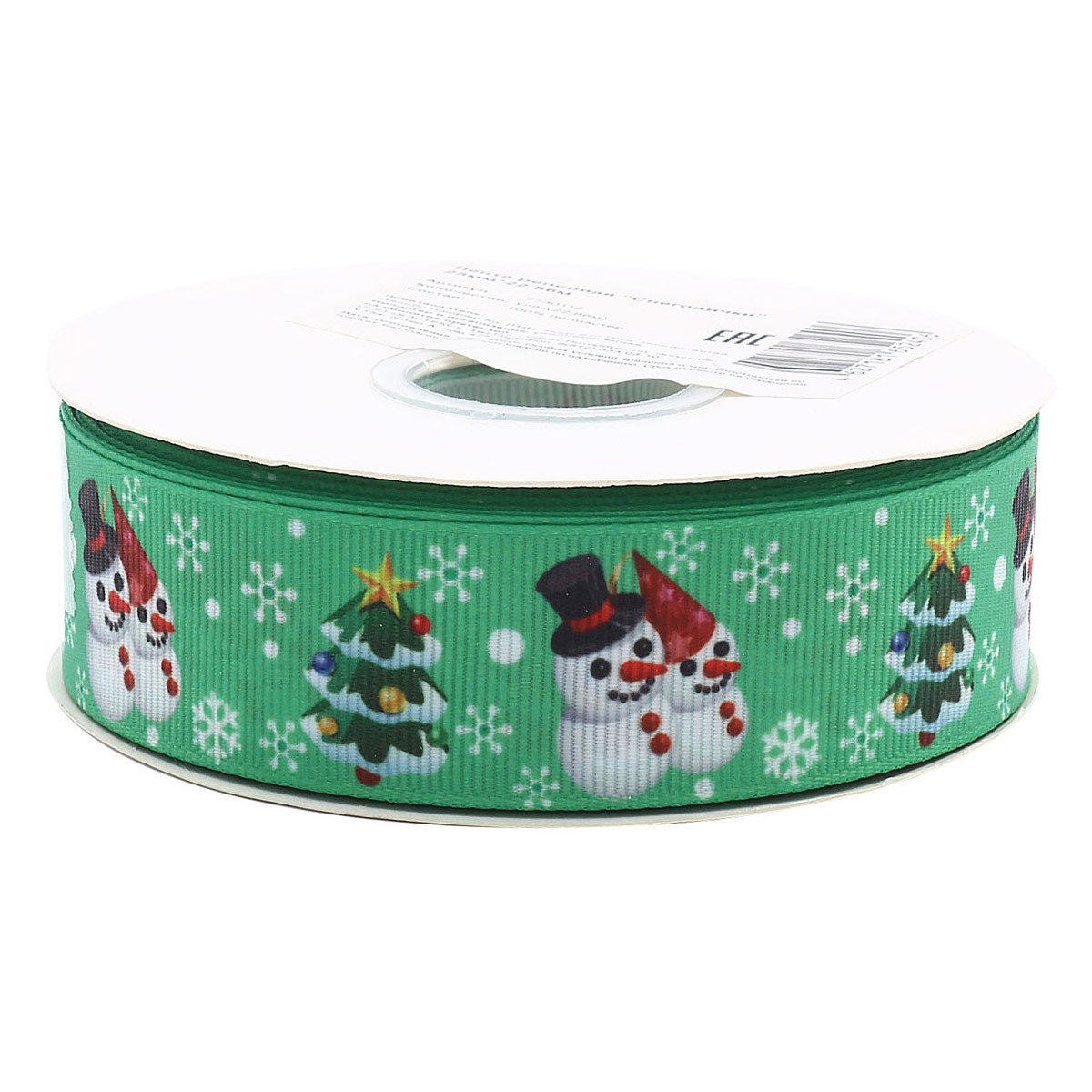 Лента репсовая (в рубчик) Снеговички 25 мм, 22.86 м
