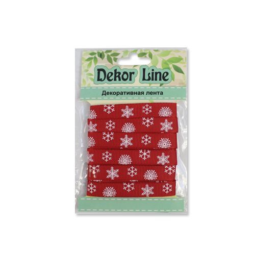 Лента репсовая (в рубчик) с принтом 10.0 мм / 3 метра, Снежинки, красный