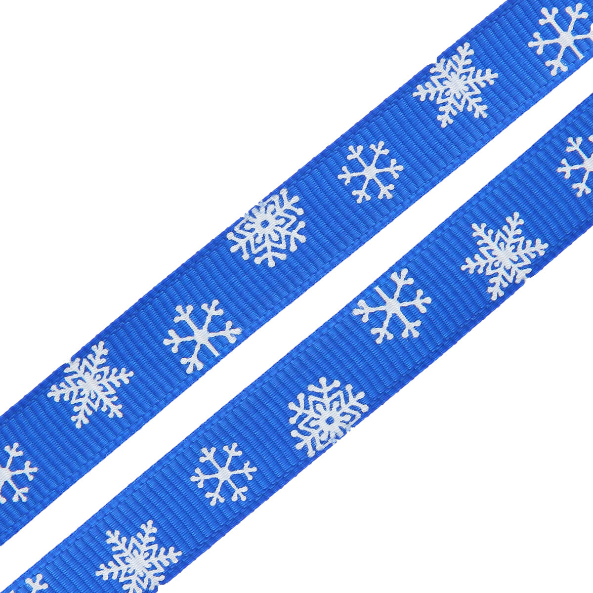 Лента репсовая (в рубчик) Снежинки, 10 мм, 3м, синий