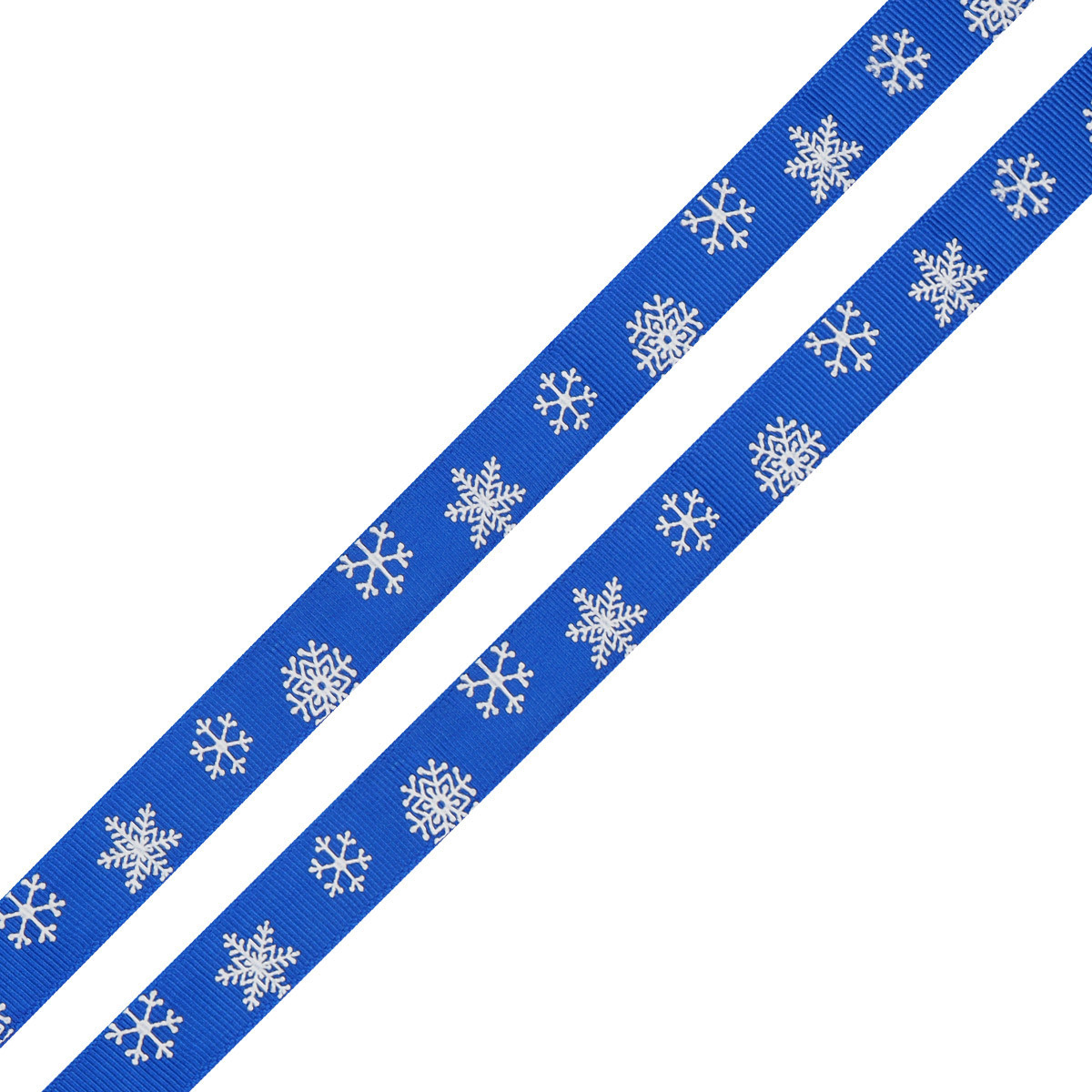 Лента репсовая (в рубчик) Снежинки, 15мм / 3м (синий)