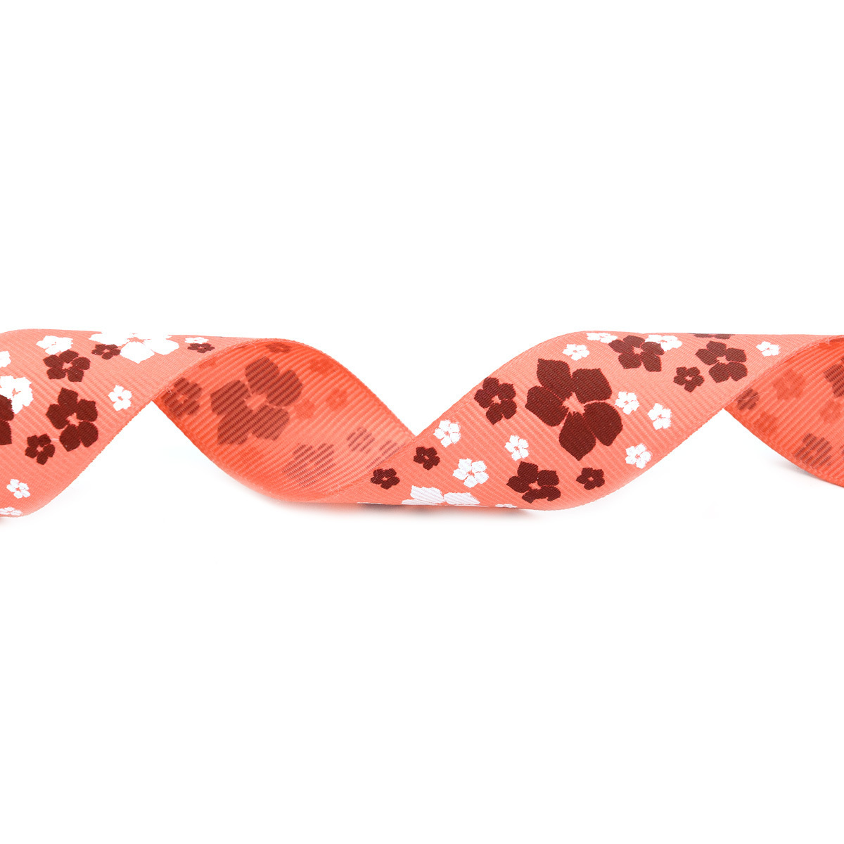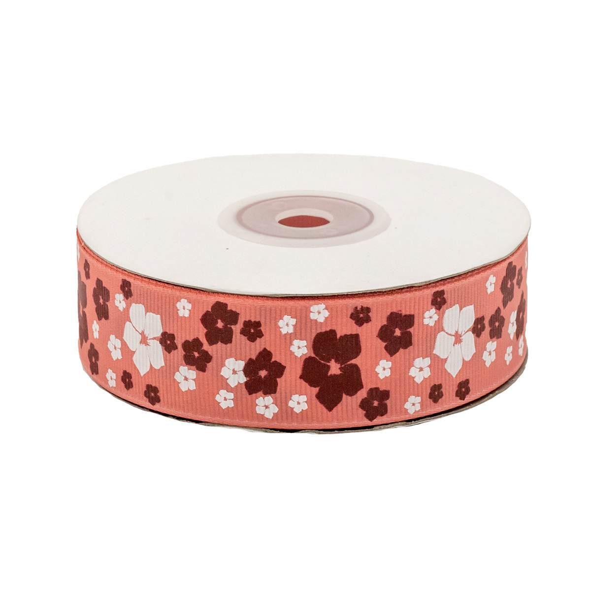 Лента репсовая (в рубчик) Цветочки 1 25.0 мм, 22.86 м 3-83 (коралловый)