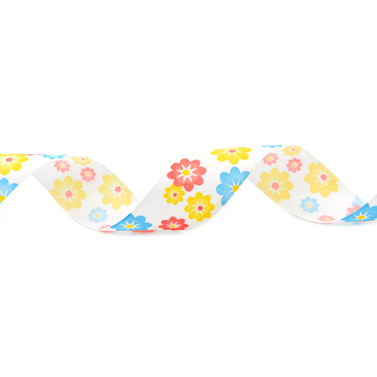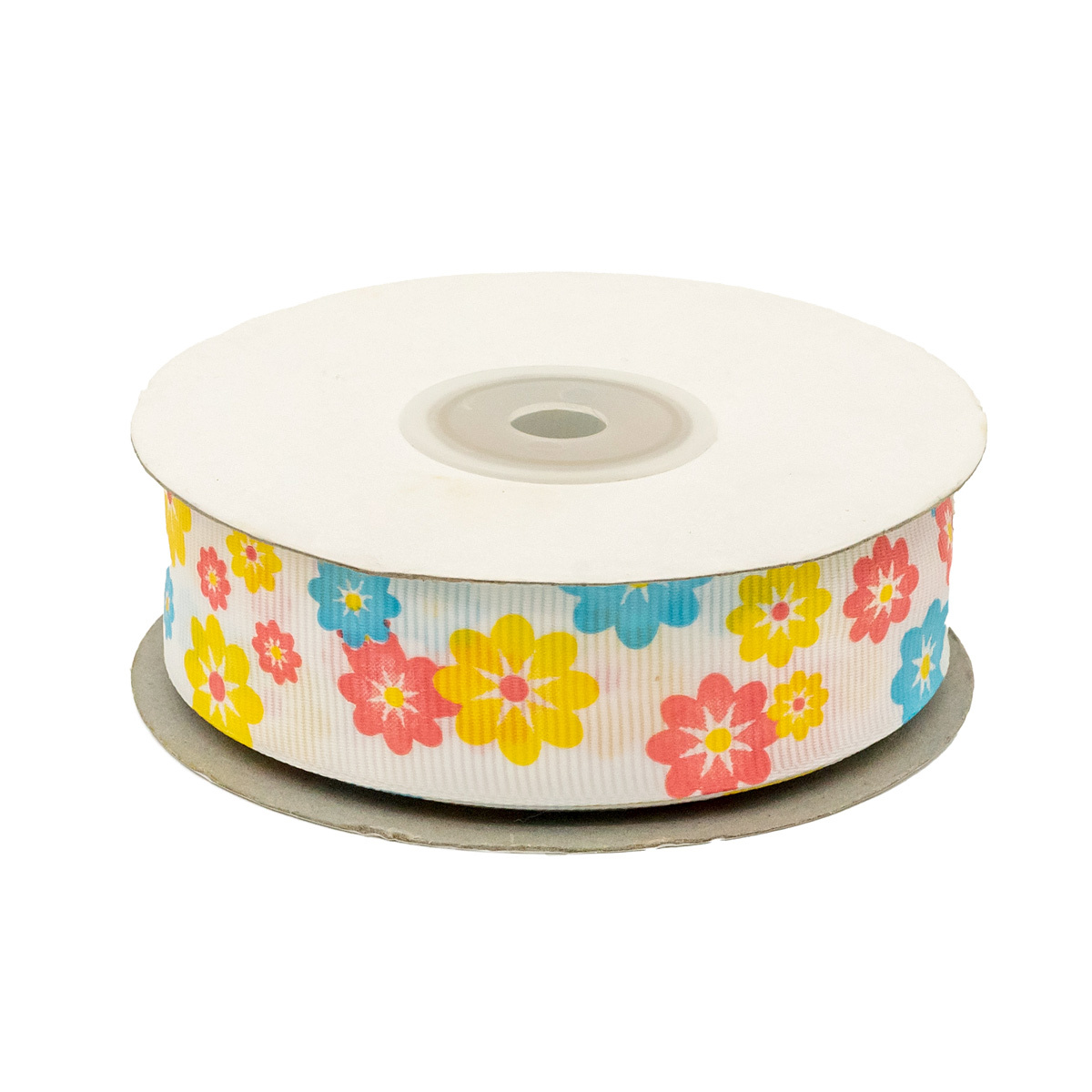 Лента репсовая (в рубчик) Цветочки 2 25.0 мм, 22.86 м (желтый/розовый)