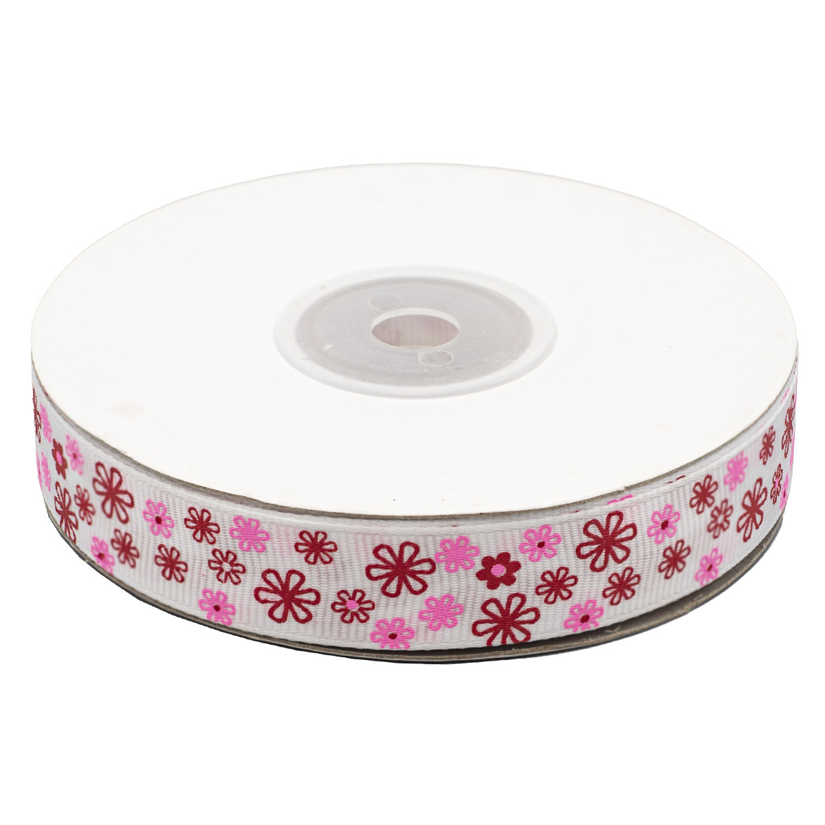 Лента репсовая (в рубчик) Цветочки 4 1,5см*22.86 м (белый)