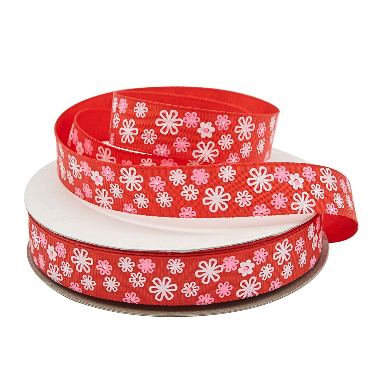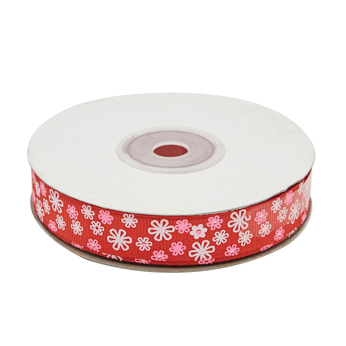 Лента репсовая (в рубчик) Цветочки 4 1,5см*22.86 м (красный)