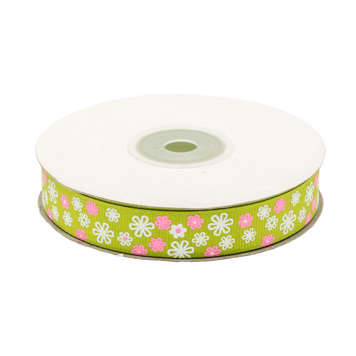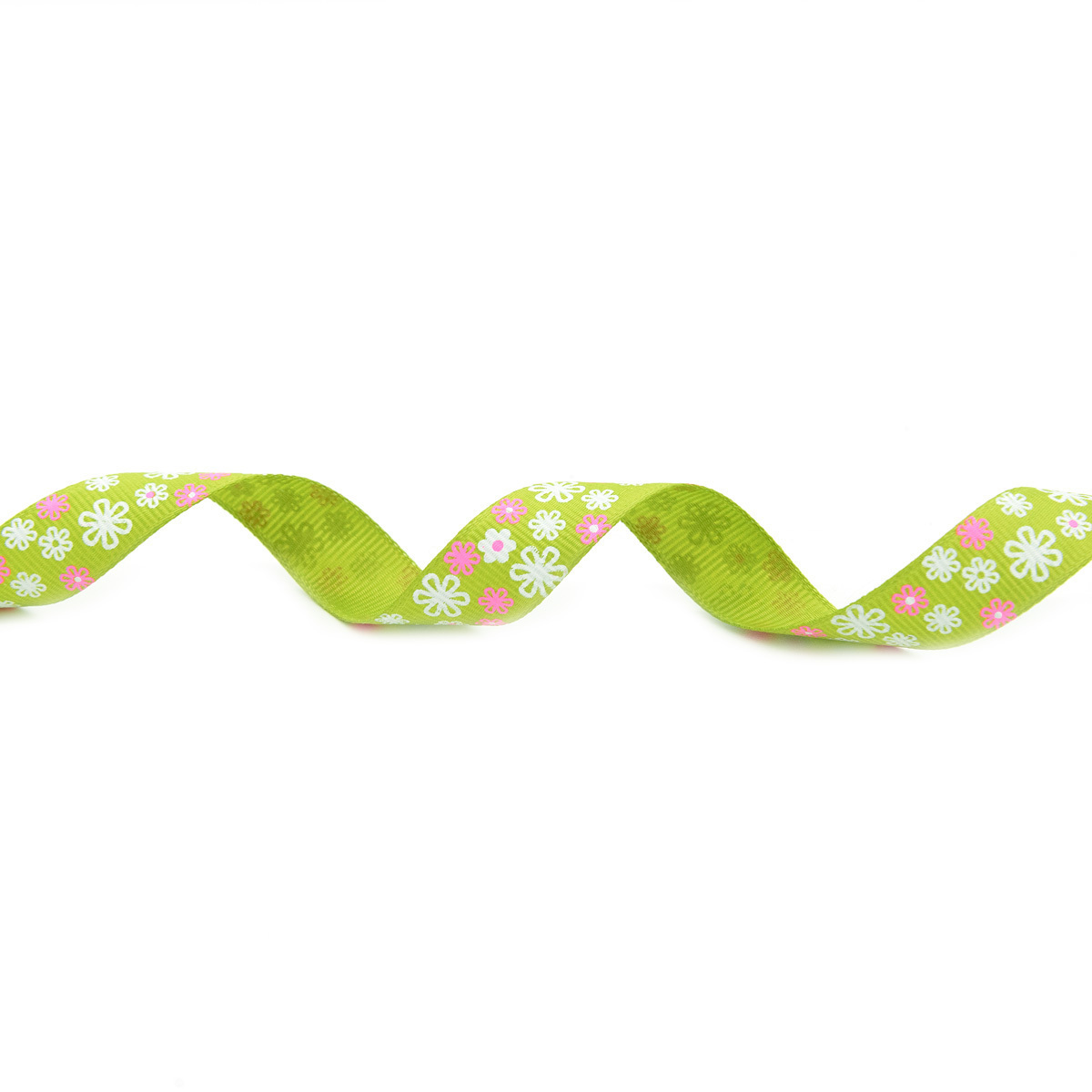 Лента репсовая (в рубчик) Цветочки 4 1,5см*22.86 м (салатовый)