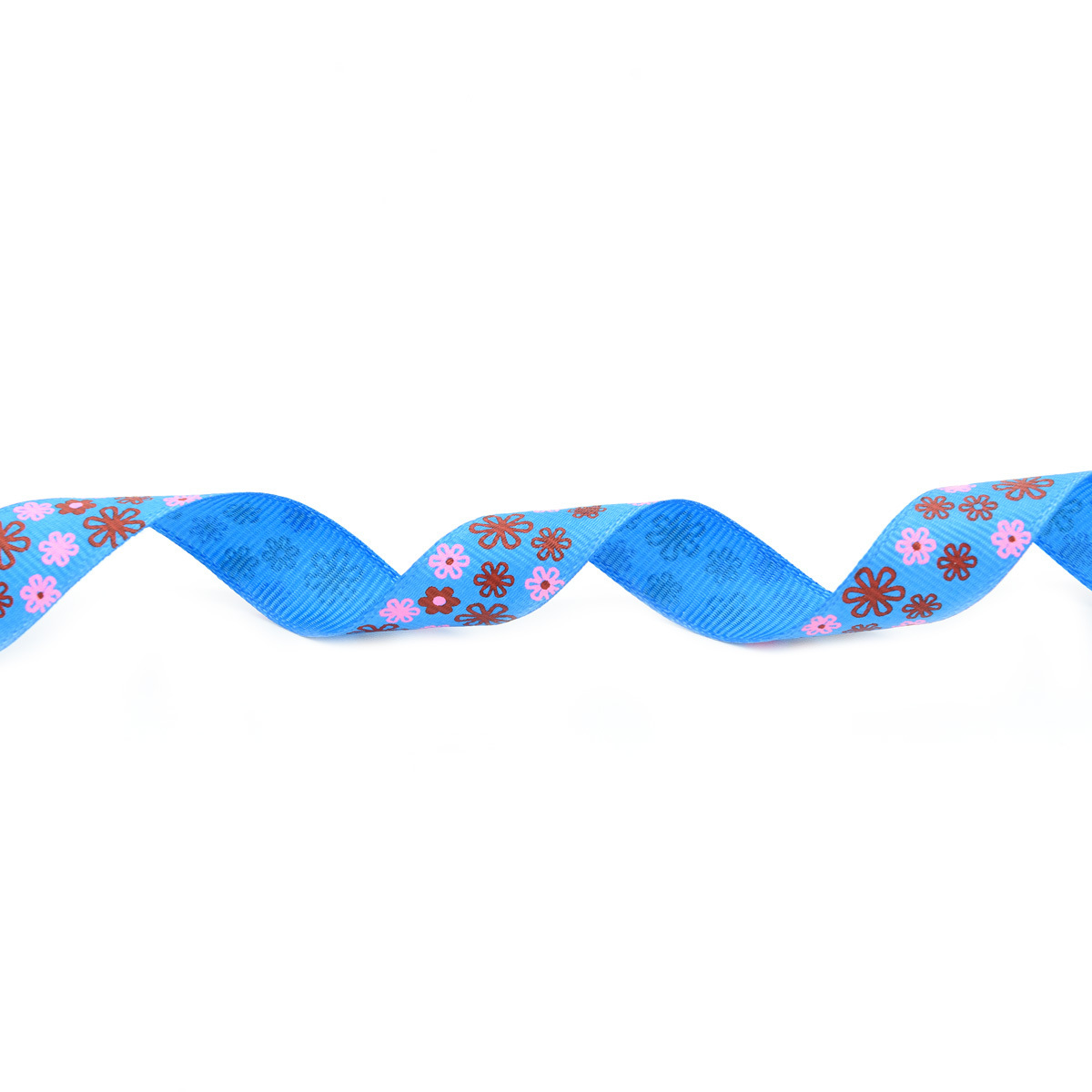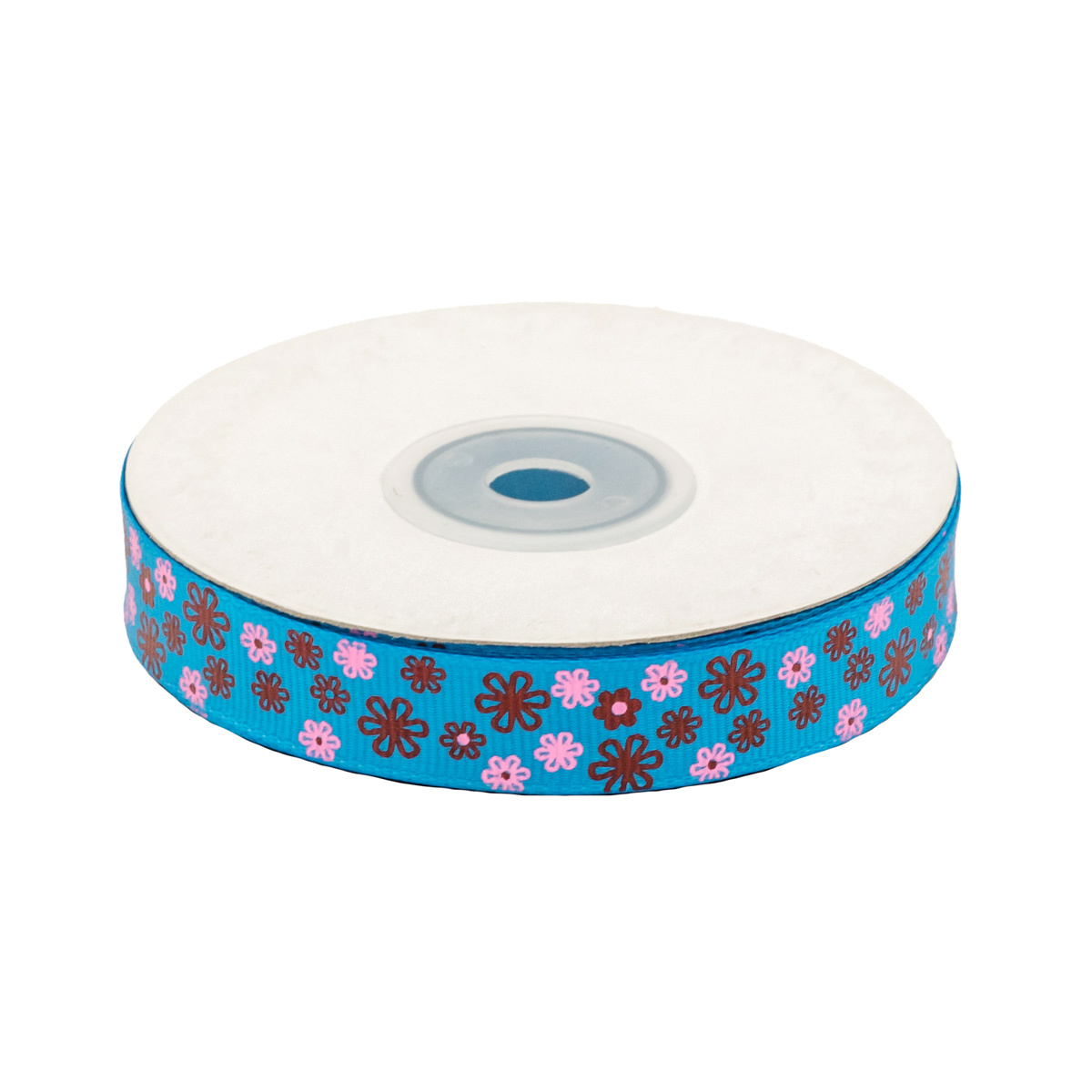 Лента репсовая (в рубчик) Цветочки 4 1,5см*22.86 м (синий)