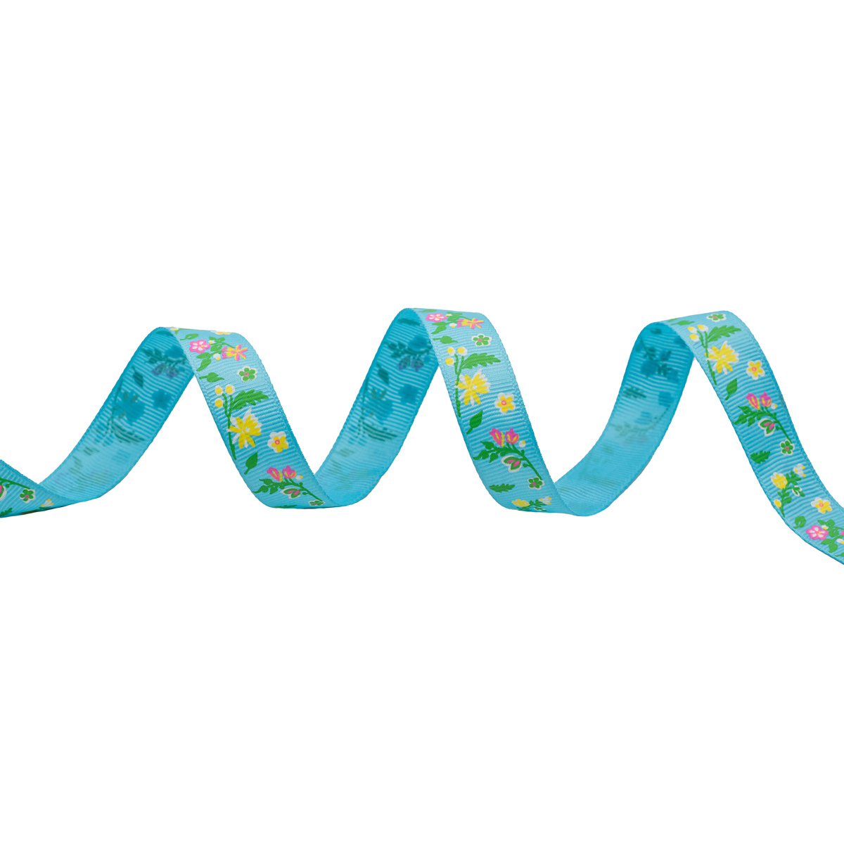 Лента репсовая (в рубчик) Цветочки маленькие 1,5см*22.86 м (голубой)