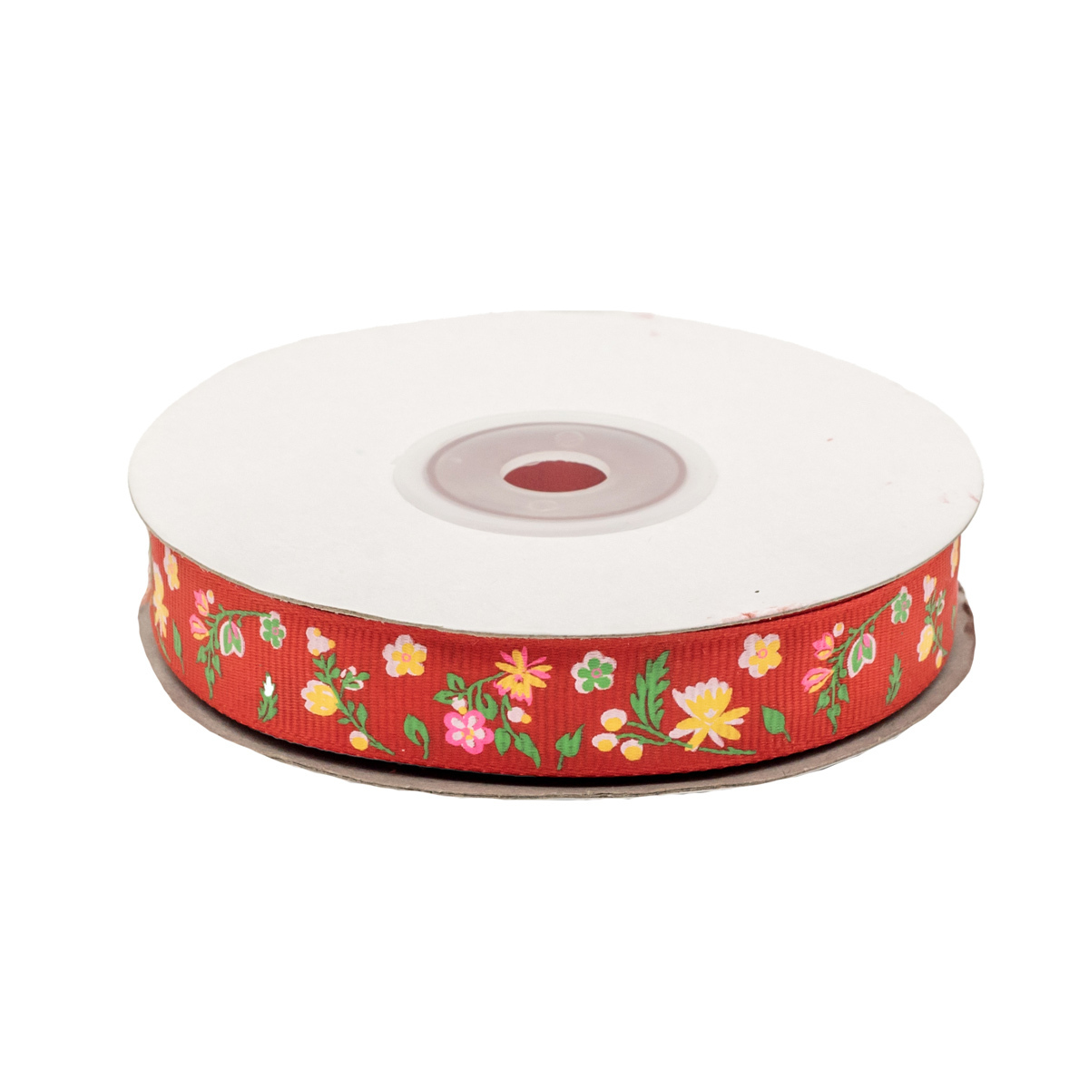 Лента репсовая (в рубчик) Цветочки маленькие 1,5см*22.86 м (красный)