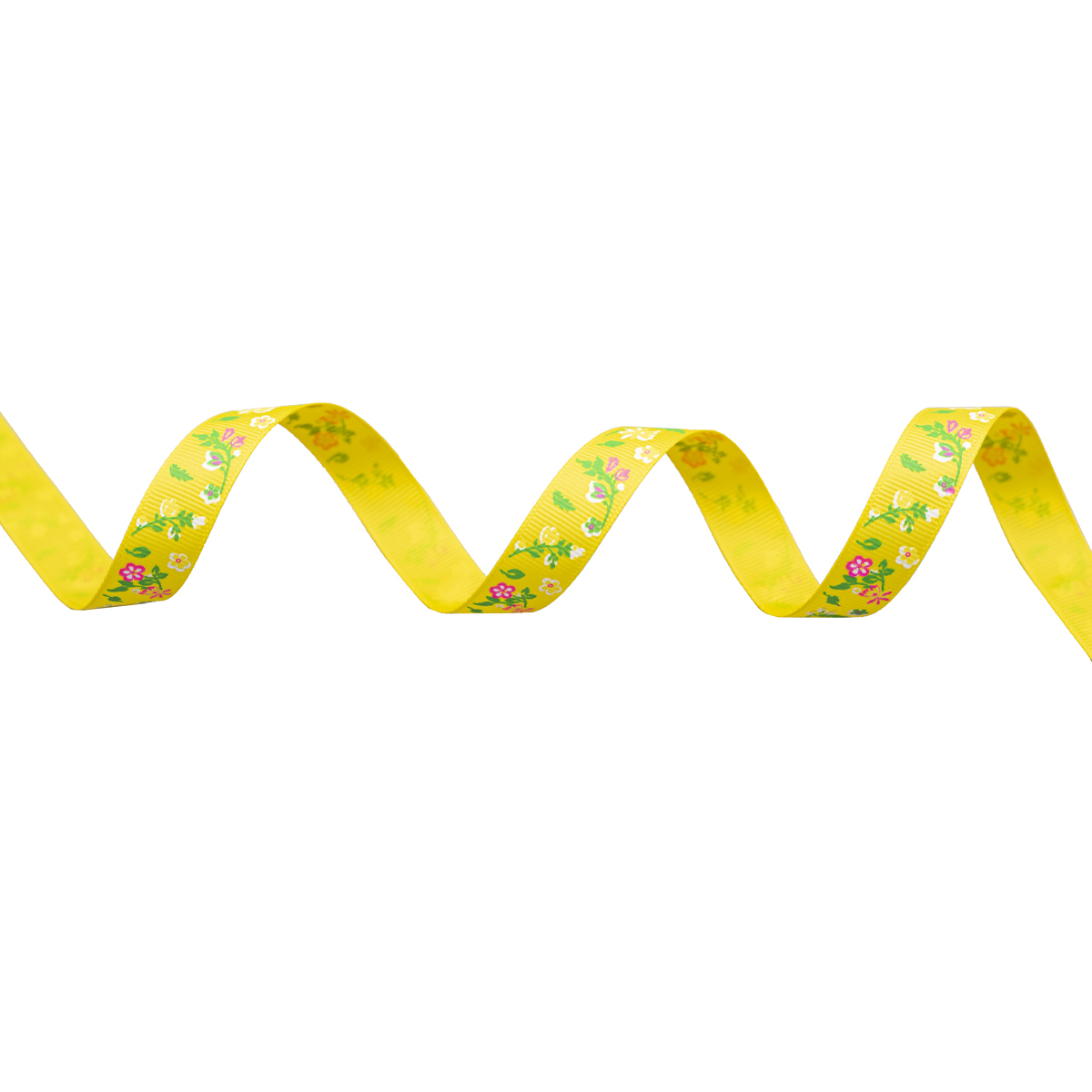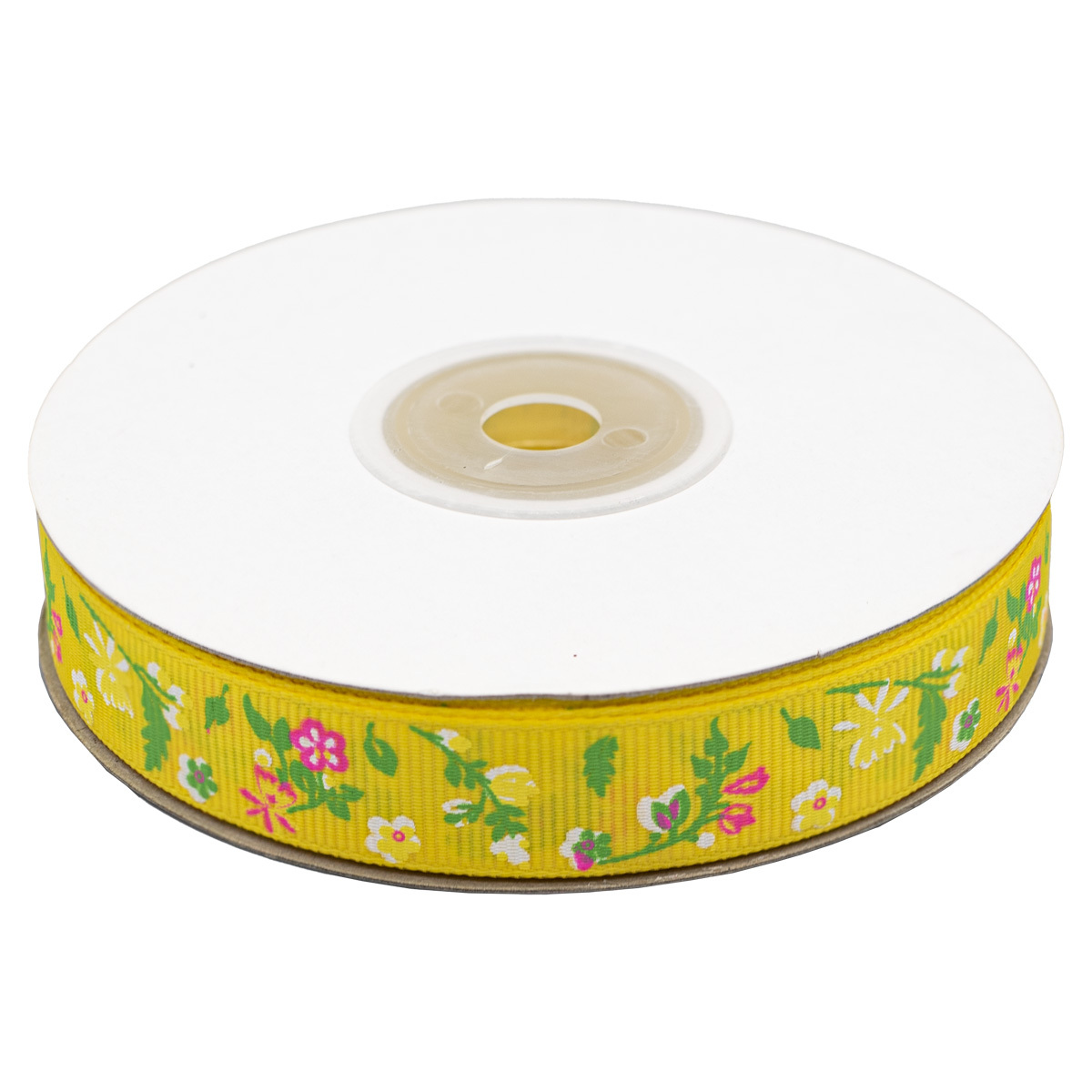 Лента репсовая (в рубчик) Цветочки маленькие 1,5см*22.86 м (желтый)