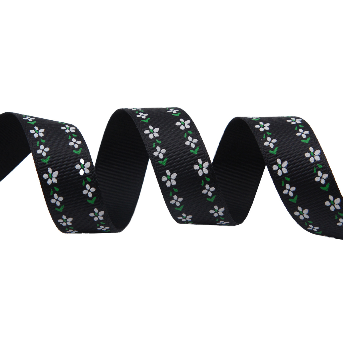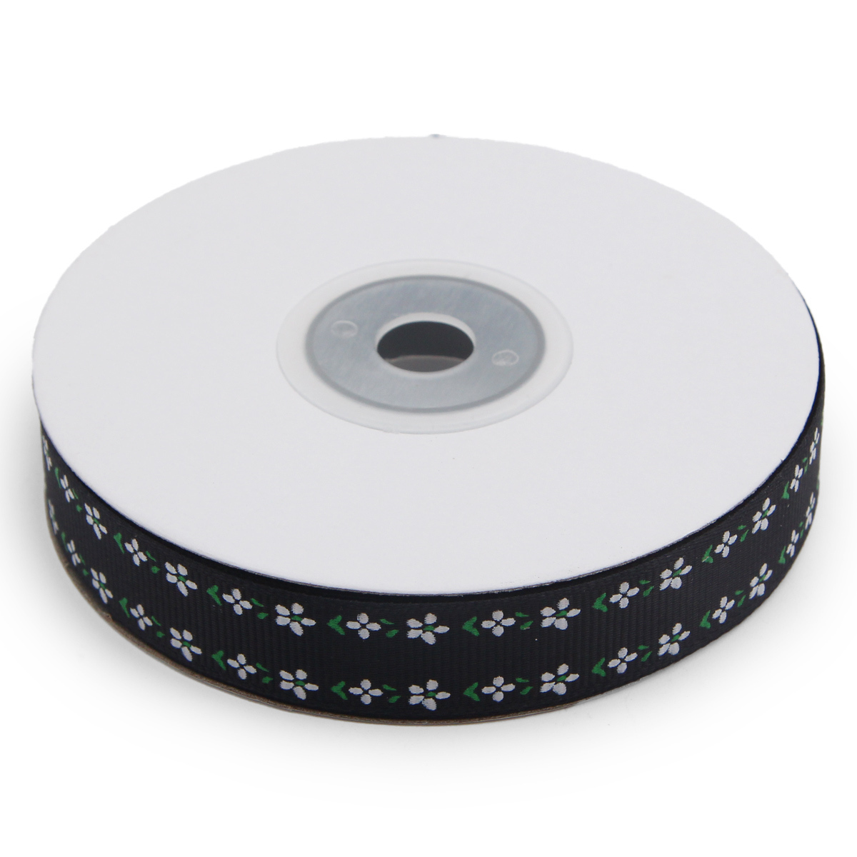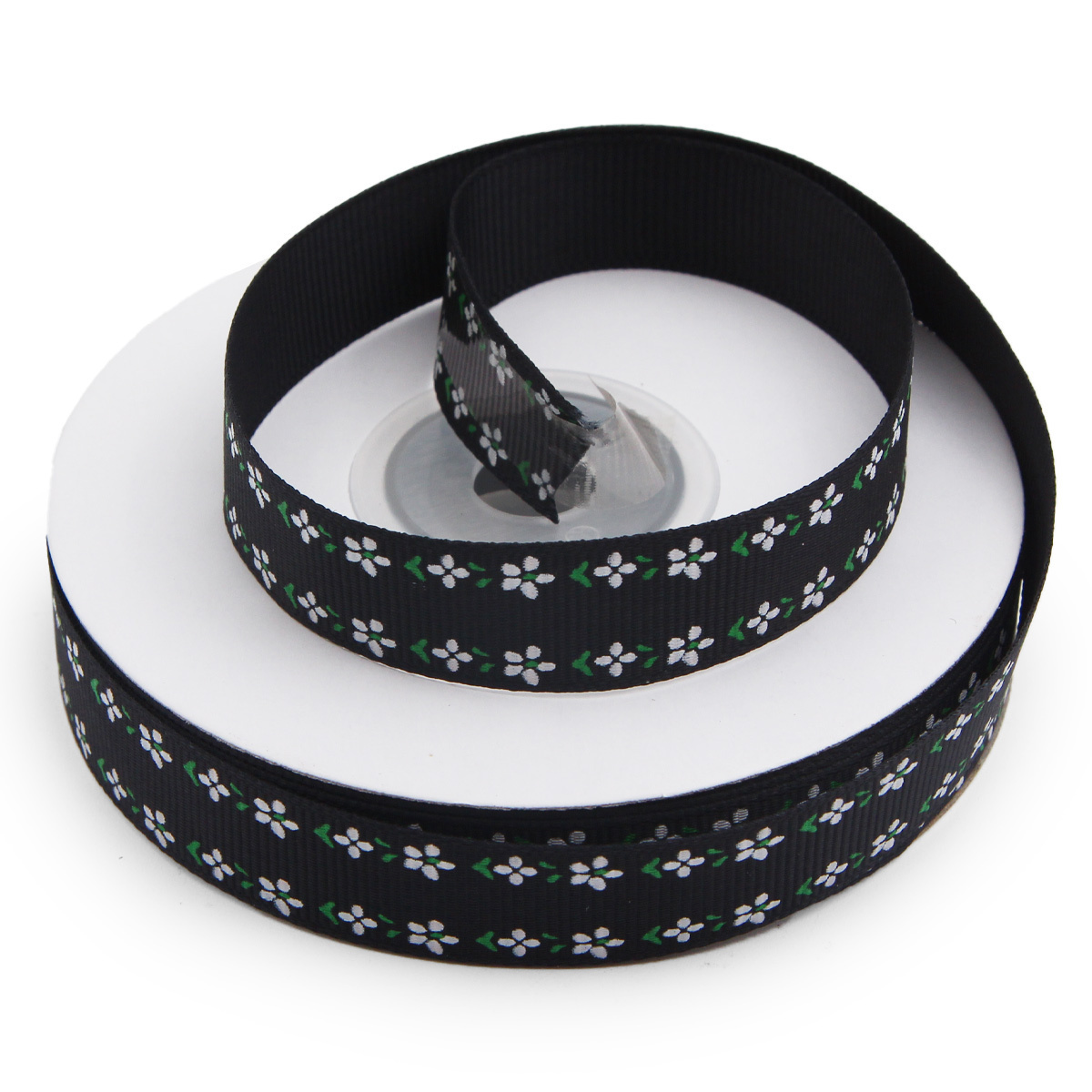 Лента репсовая (в рубчик) Цветочный орнамент 1,5см*22.86 м (черный)