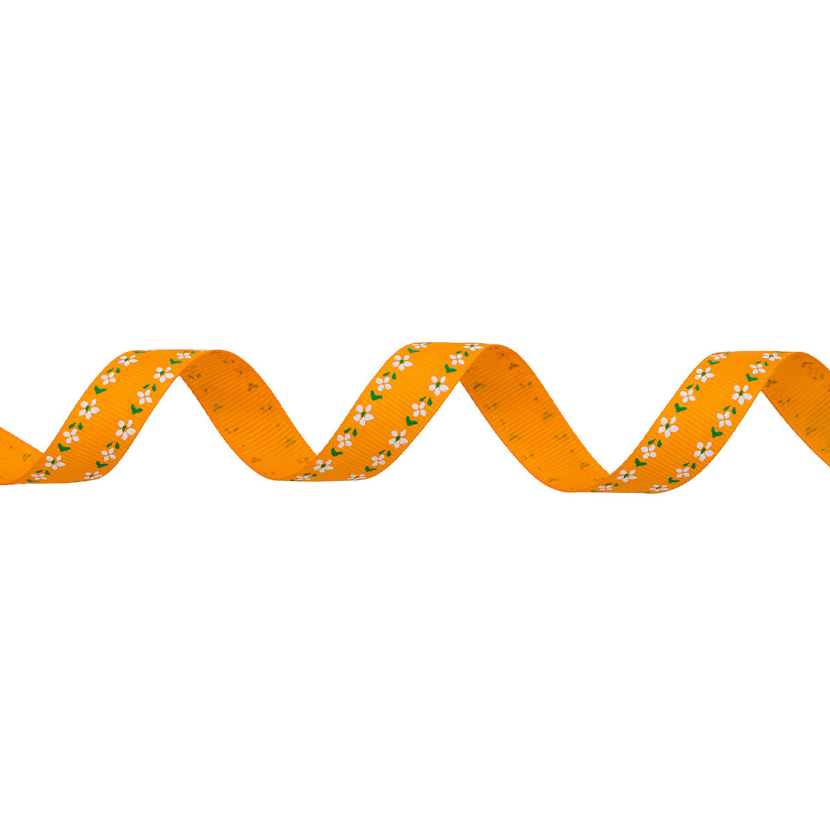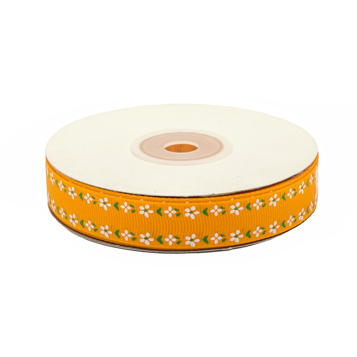 Лента репсовая (в рубчик) Цветочный орнамент 1,5см*22.86 м (оранжевый)