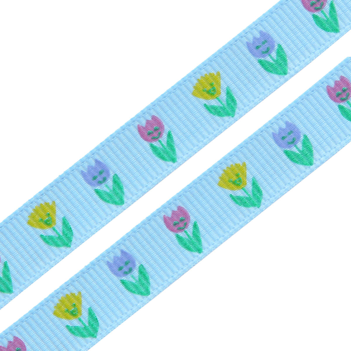 Лента репсовая (в рубчик) Тюльпаны, 10 мм, 3м, голубой