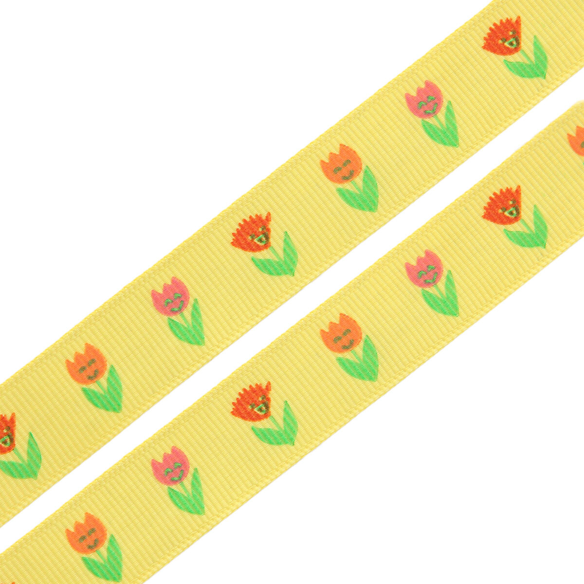 Лента репсовая (в рубчик) Тюльпаны, 15 мм, 3м, желтый