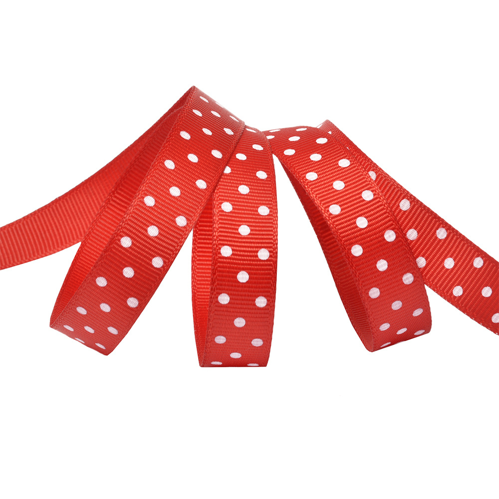 Лента репсовая (в рубчик) 12.0 мм / 27.4±2 метров, LDRG25002912 (91) крупный горошек, красный-белый