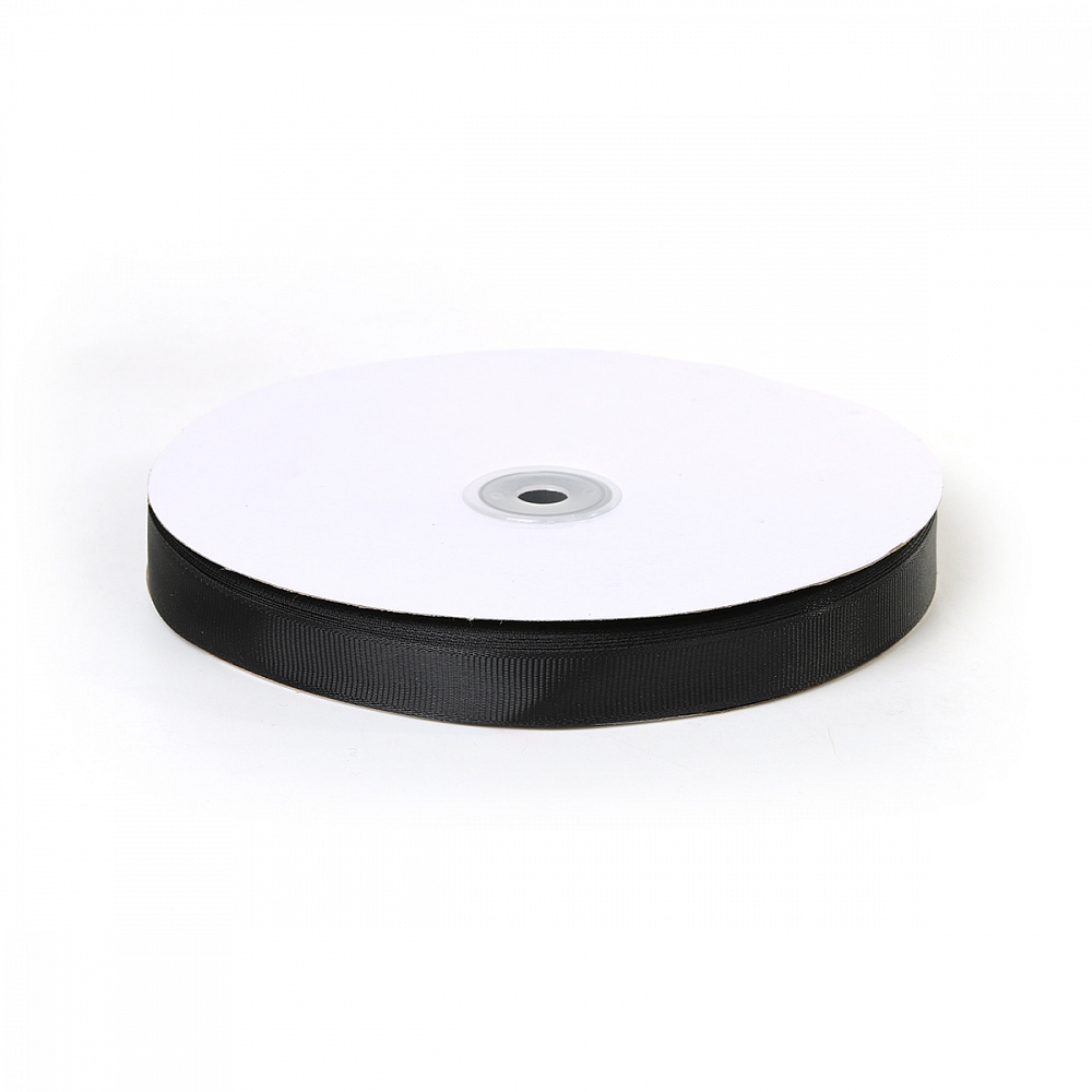 Лента репсовая (в рубчик) 15.0 мм цв. 030 черный уп.91.4м