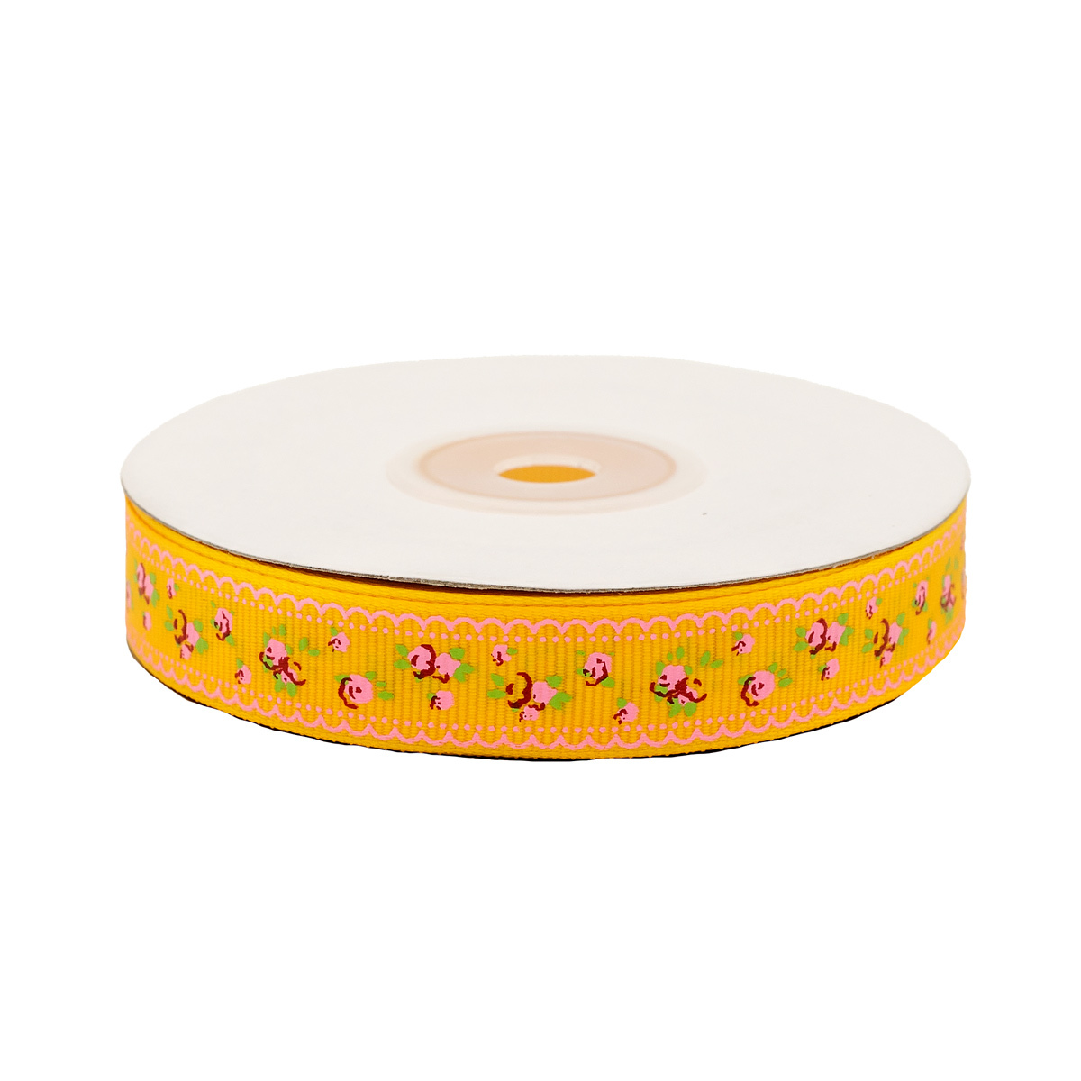 Лента репсовая (в рубчик) Весенние Розы 1,5см*22.86 м (желтый)