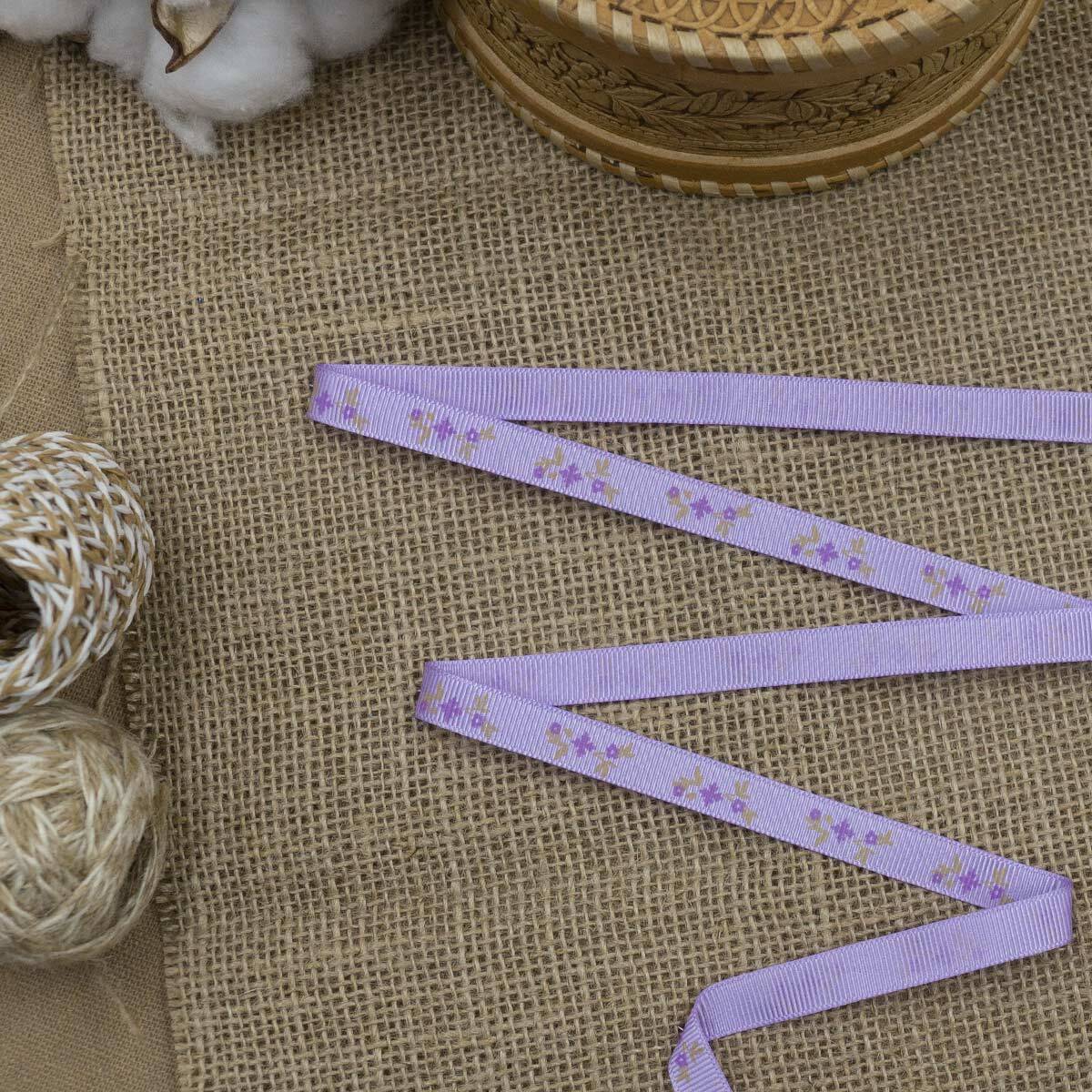 Лента репсовая (в рубчик) Веточки, 10 мм, 3м, сиреневый