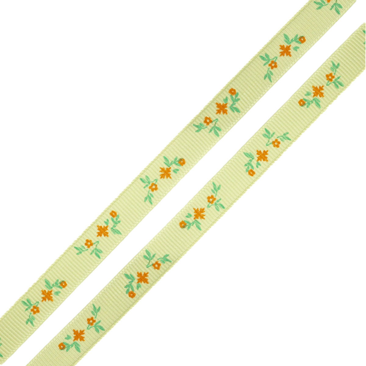 Лента репсовая (в рубчик) Веточки, 10 мм, 3м, зеленый