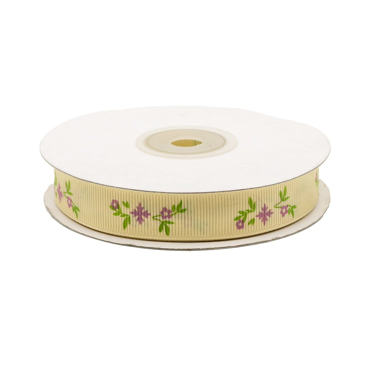 Лента репсовая (в рубчик) Веточки, 15 мм, 22,5м (бежевый)