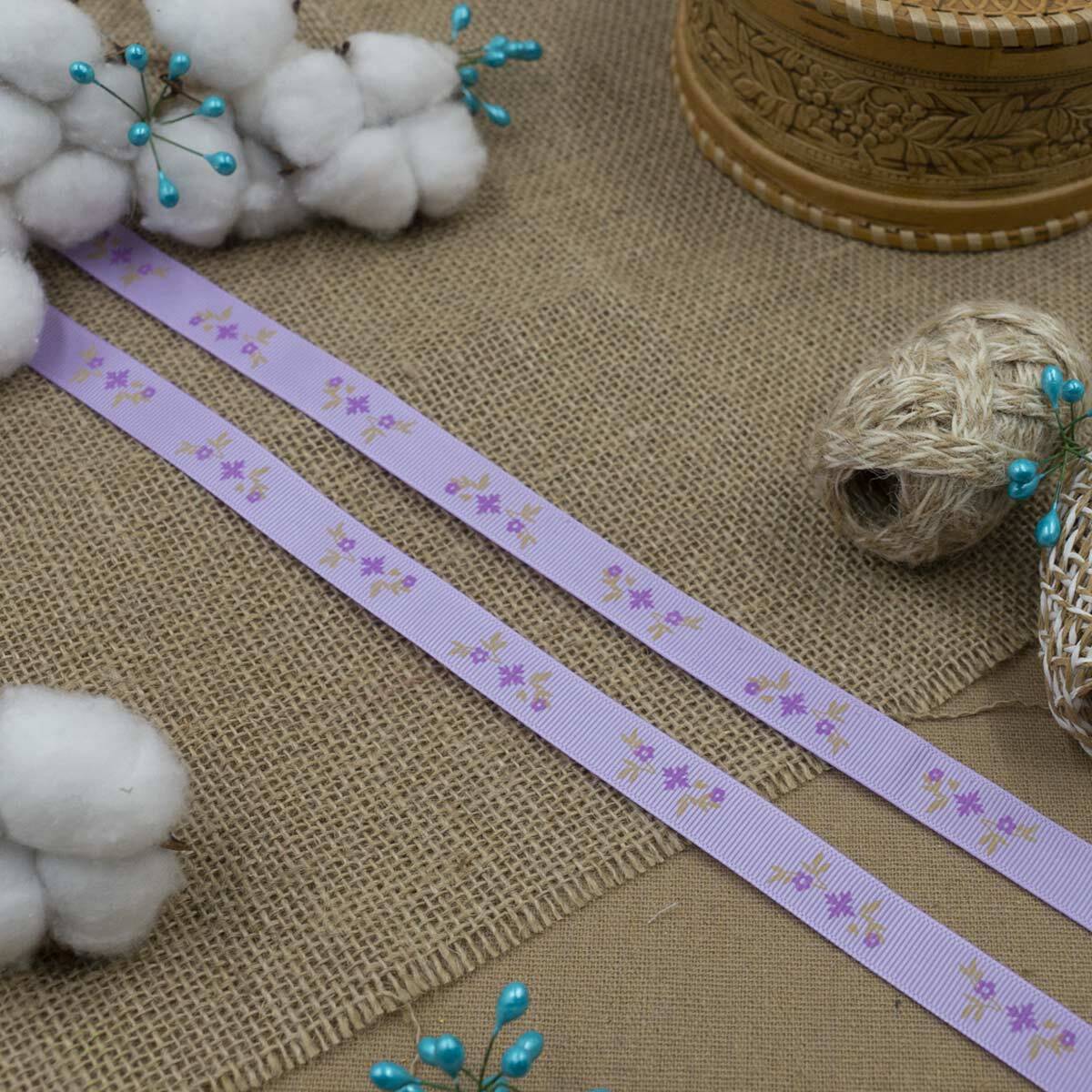 Лента репсовая (в рубчик) Веточки, 15 мм, 3м, сиреневый