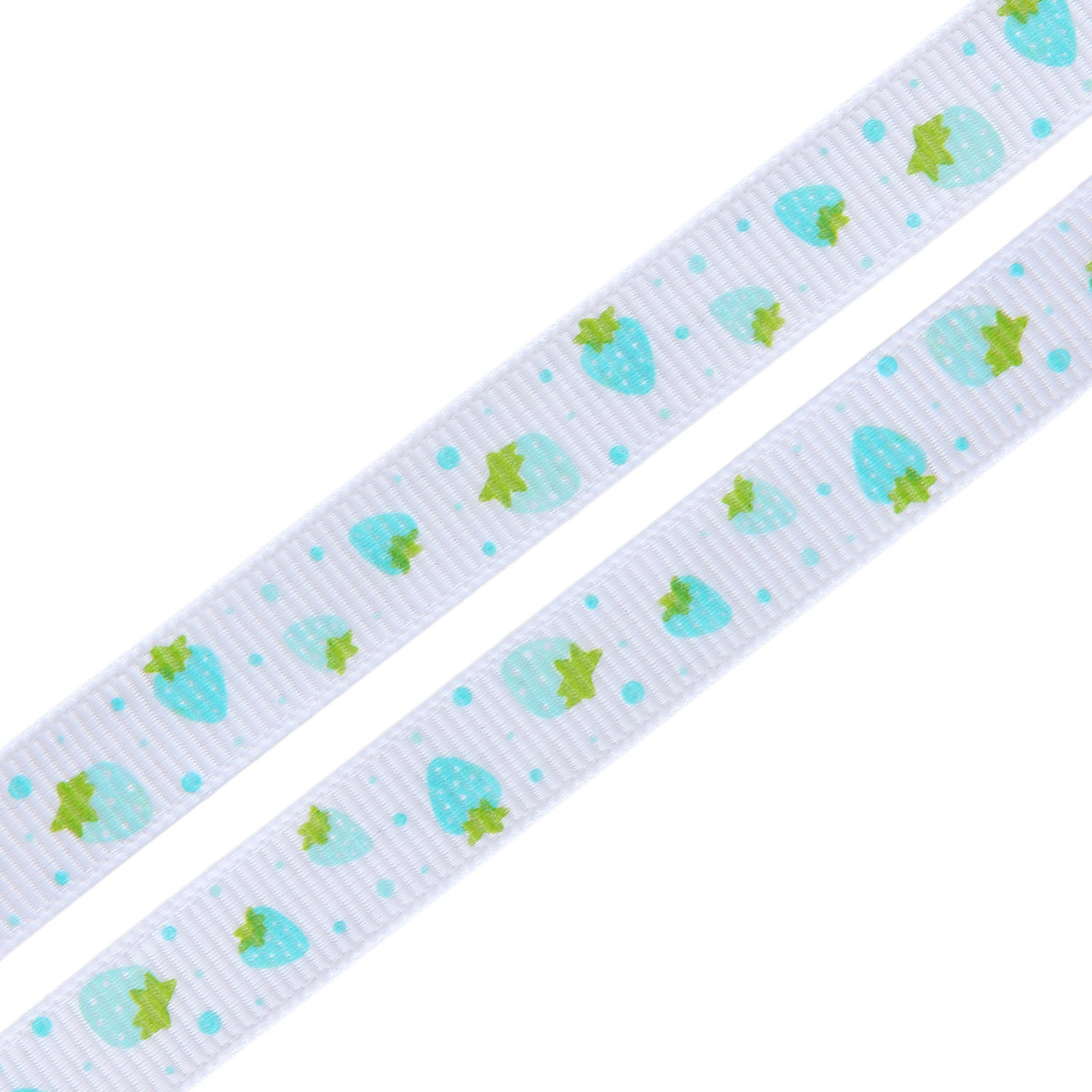 Лента репсовая (в рубчик) Землянички, 10 мм, 3м, голубой