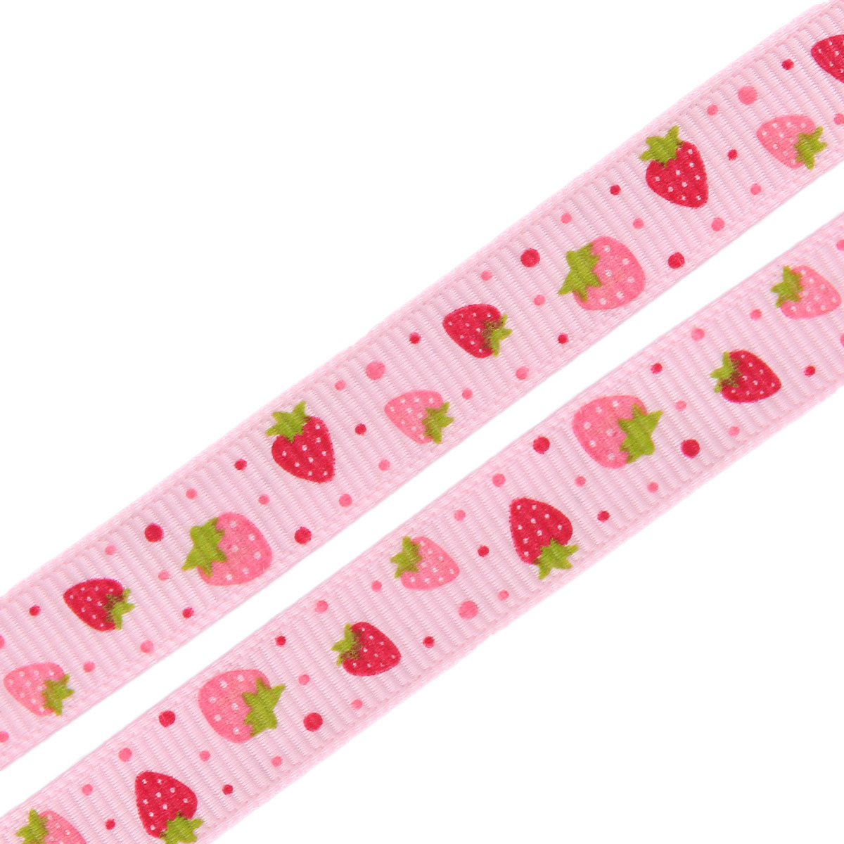 Лента репсовая (в рубчик) Землянички, 10 мм, 3м, розовый