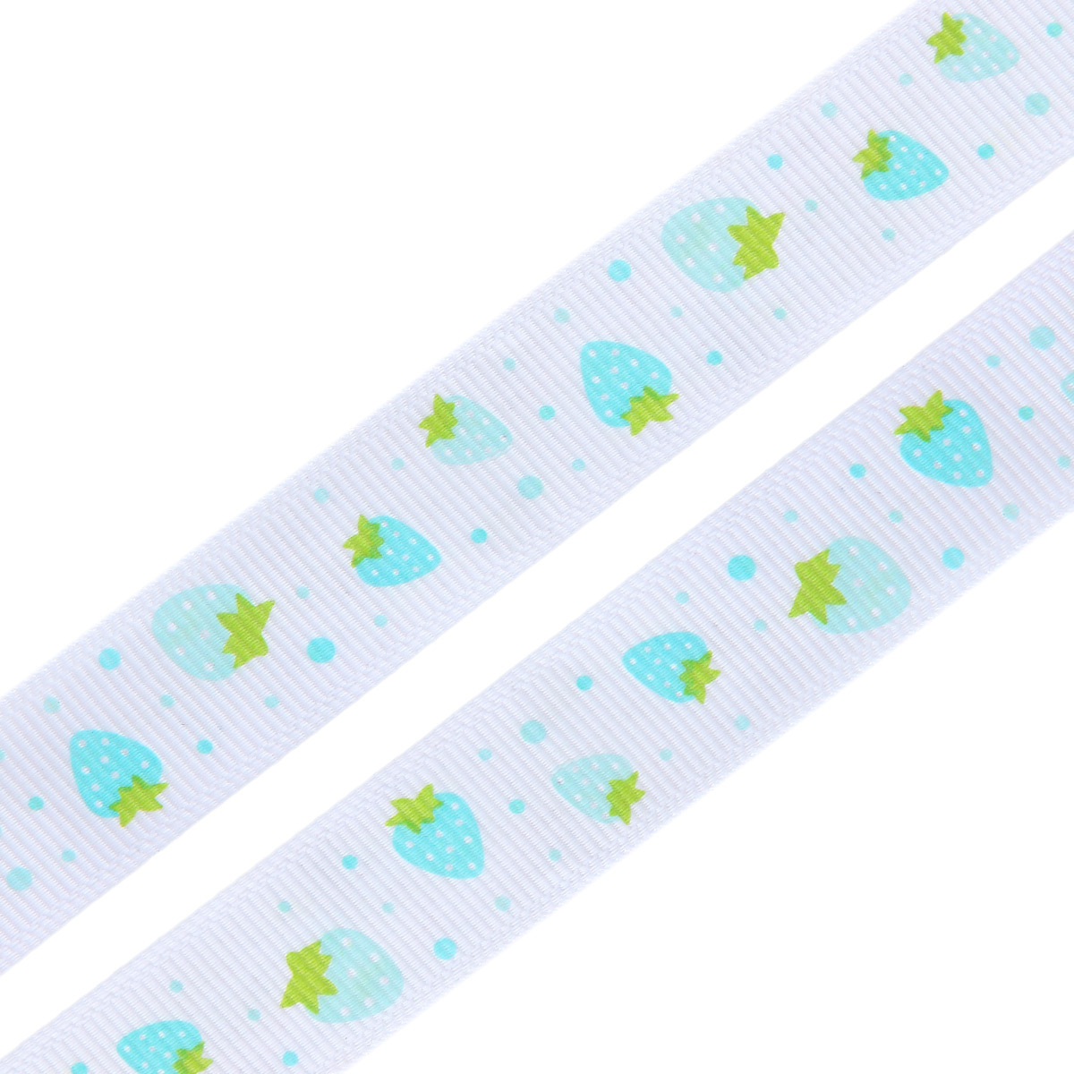 Лента репсовая (в рубчик) Землянички, 15 мм, 3м, голубой