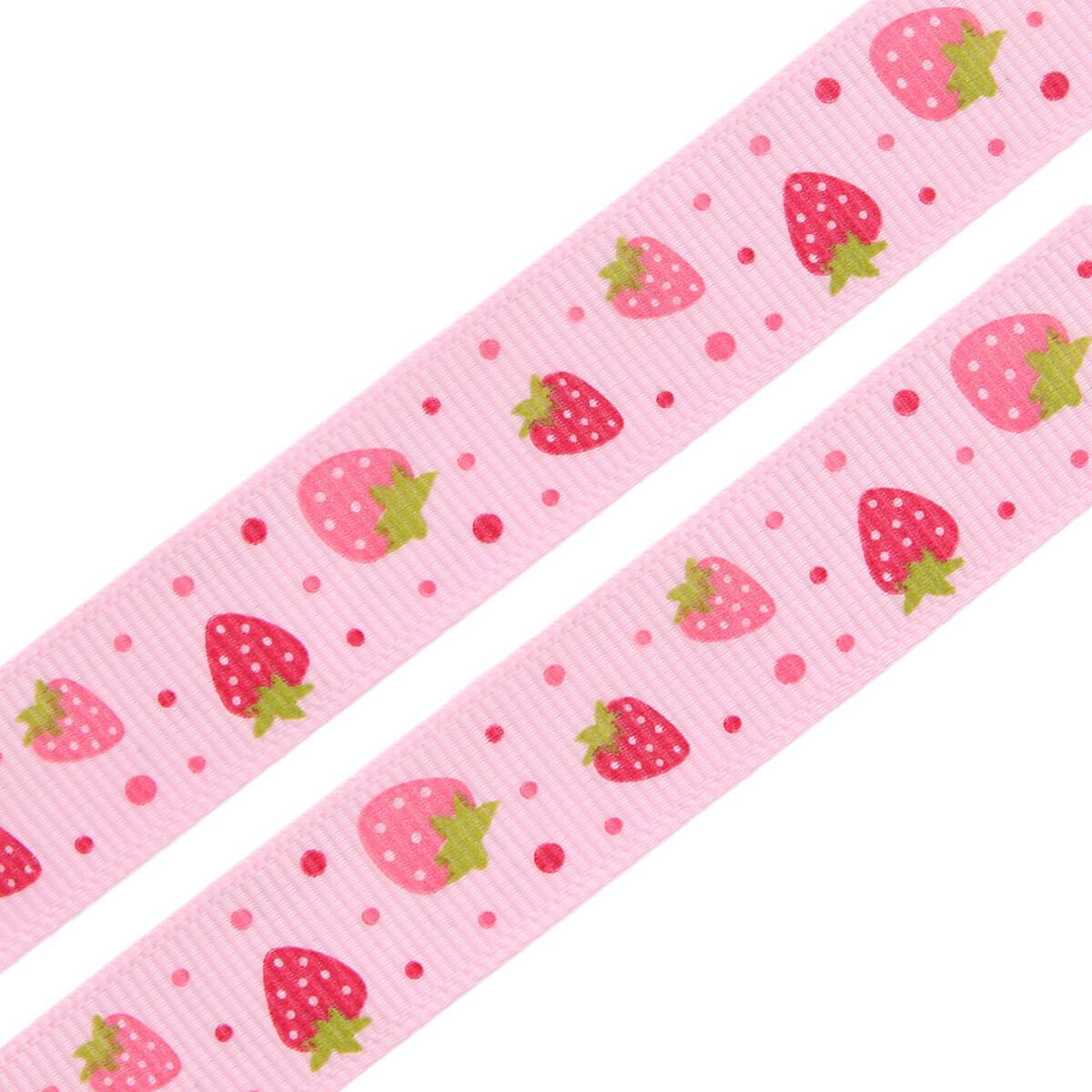 Лента репсовая (в рубчик) Землянички, 15 мм, 3м, розовый
