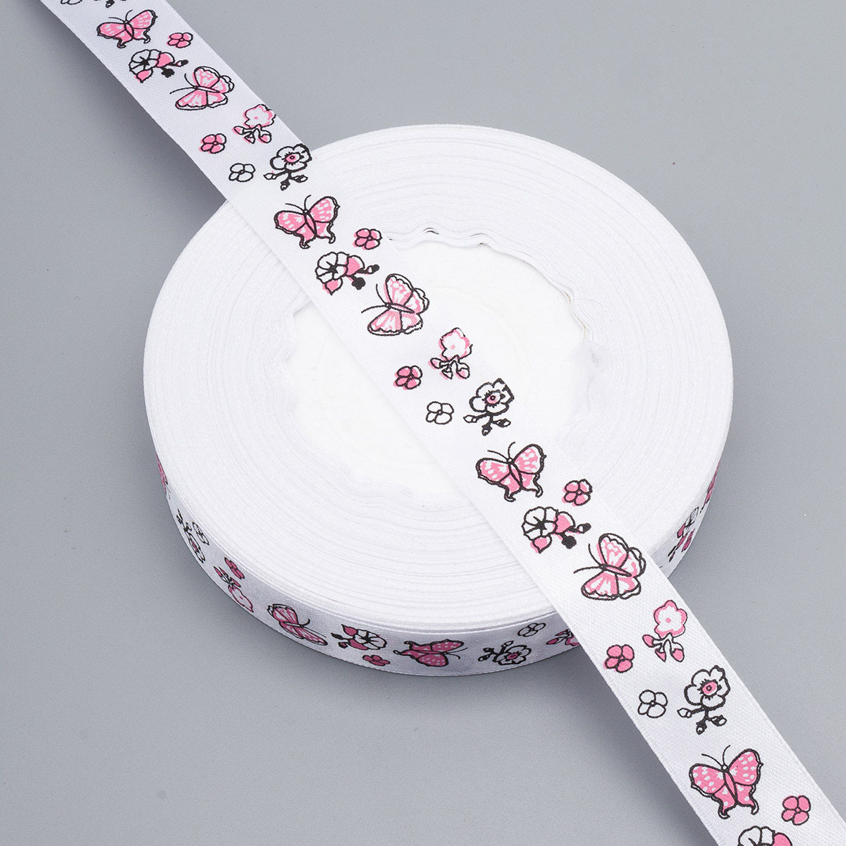 Лента декоративная с принтом Бабочки 20.0 мм / 45.72 метра, белый, 4001