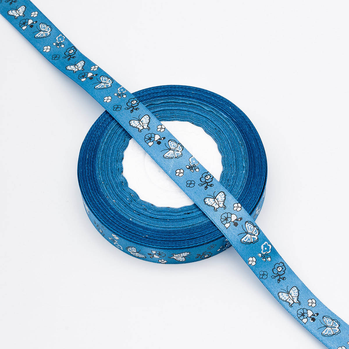 Лента декоративная с принтом Бабочки 20.0 мм / 45.72 метра, синий, 4001