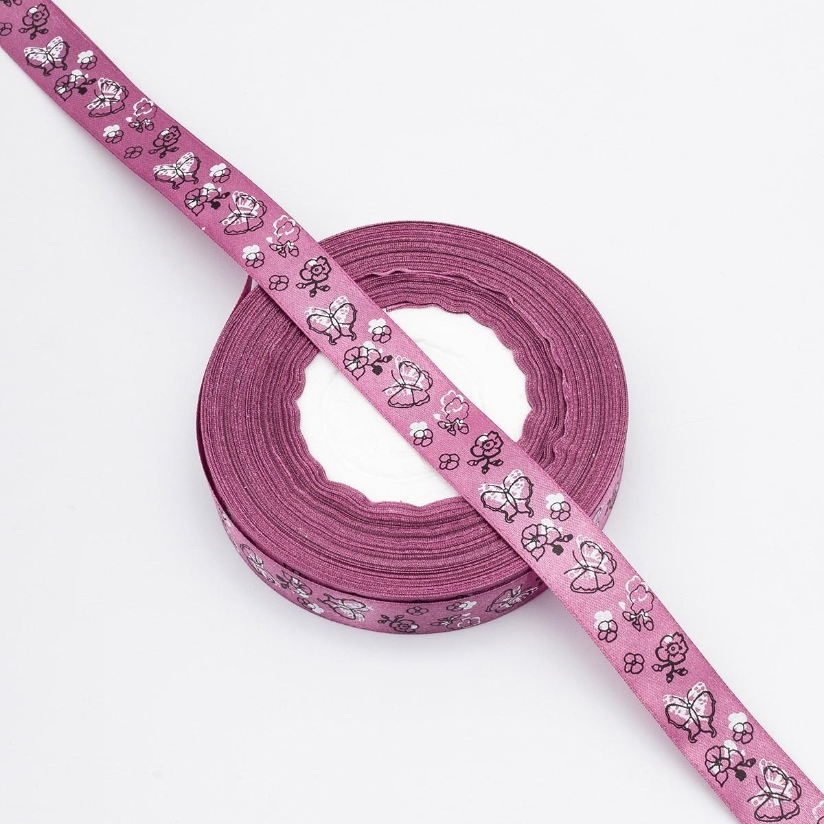 Лента декоративная с принтом Бабочки 20.0 мм / 45.72 метра, сиреневый, 4001