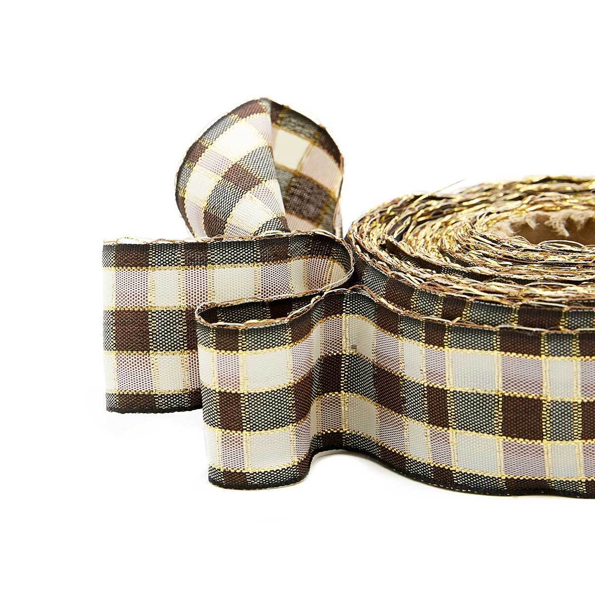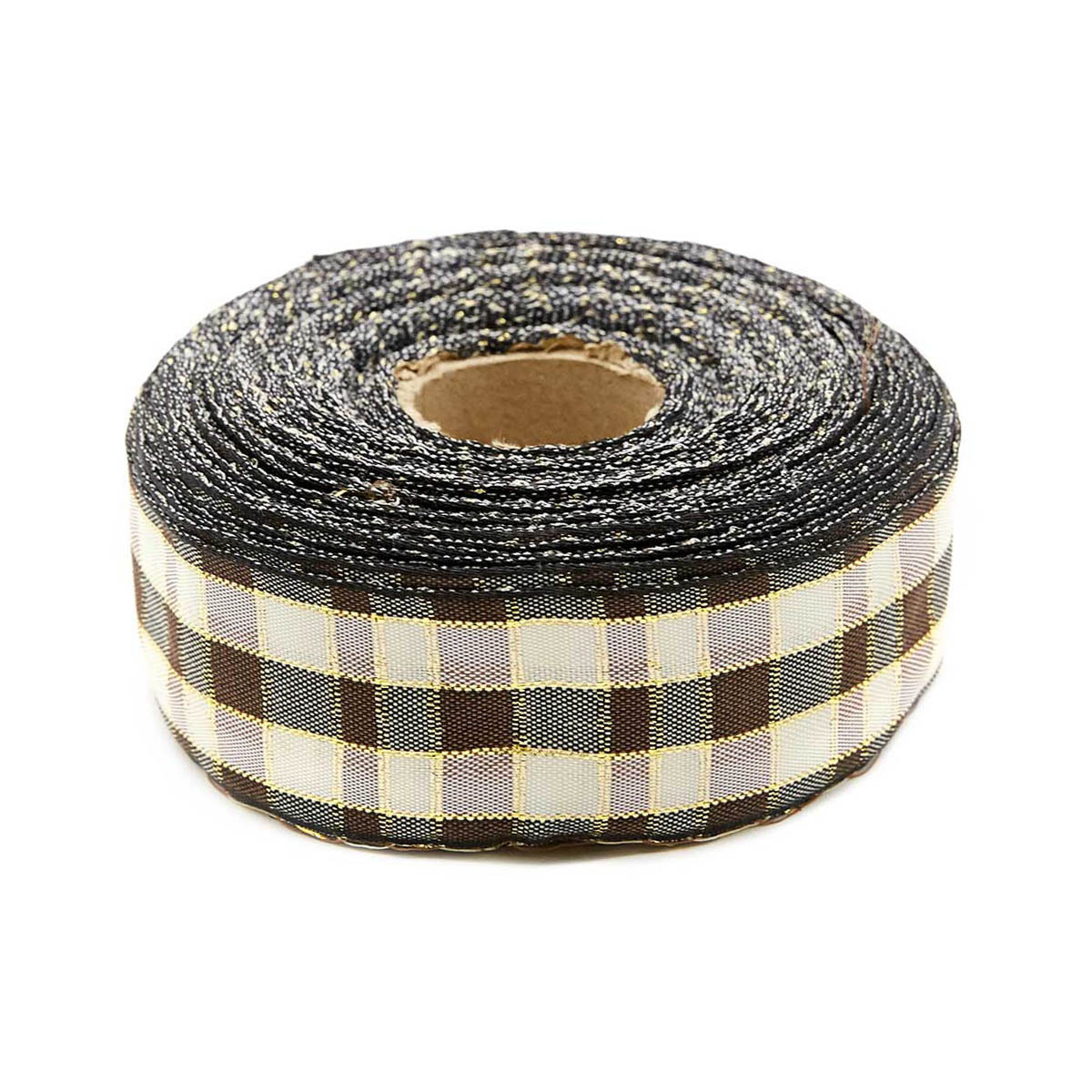 Лента Шотландка с люрексом 30 / 25м (коричневый/белый), С3301Г17