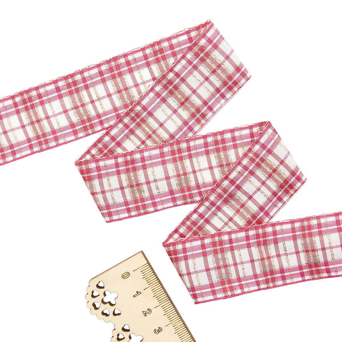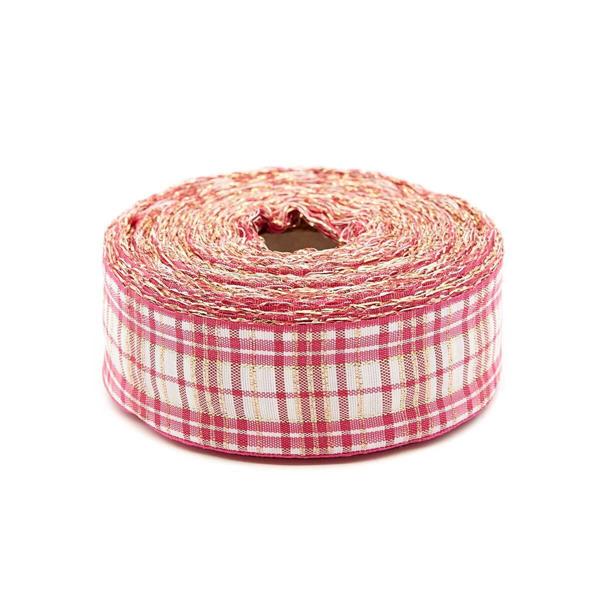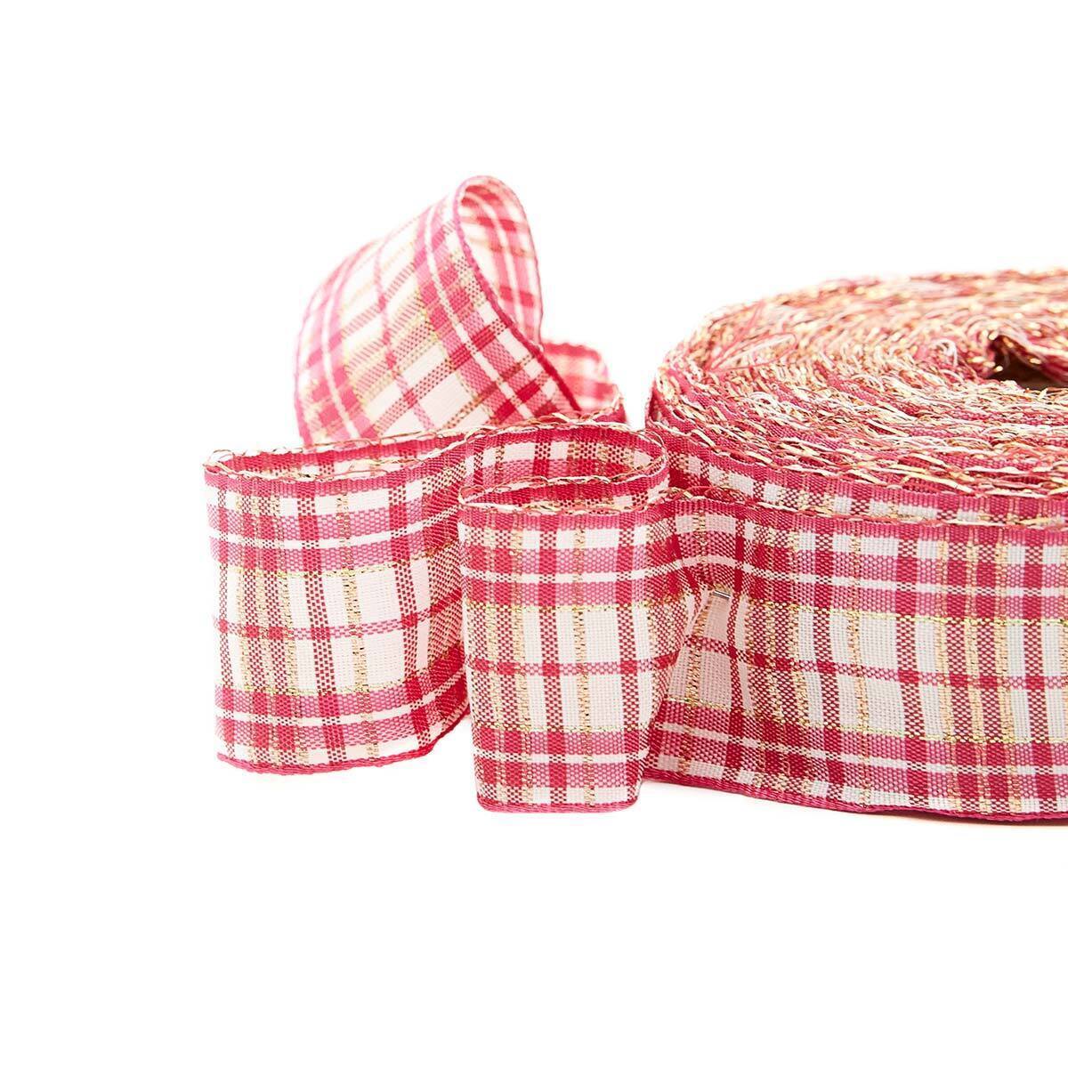 Лента Шотландка с люрексом 30 / 25м (малиновый/белый), С3301Г17