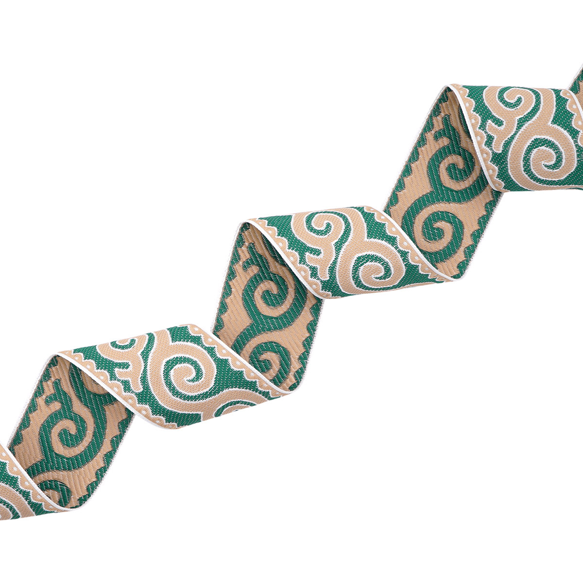 Лента (тесьма) жаккардовая 50.0 мм / 25 метров, Славянский орнамент Оберег, рис.9605, белый/бежевый/зеленый, С3775Г17