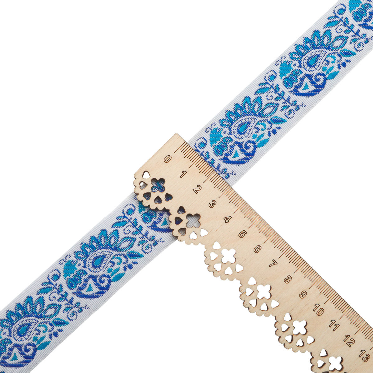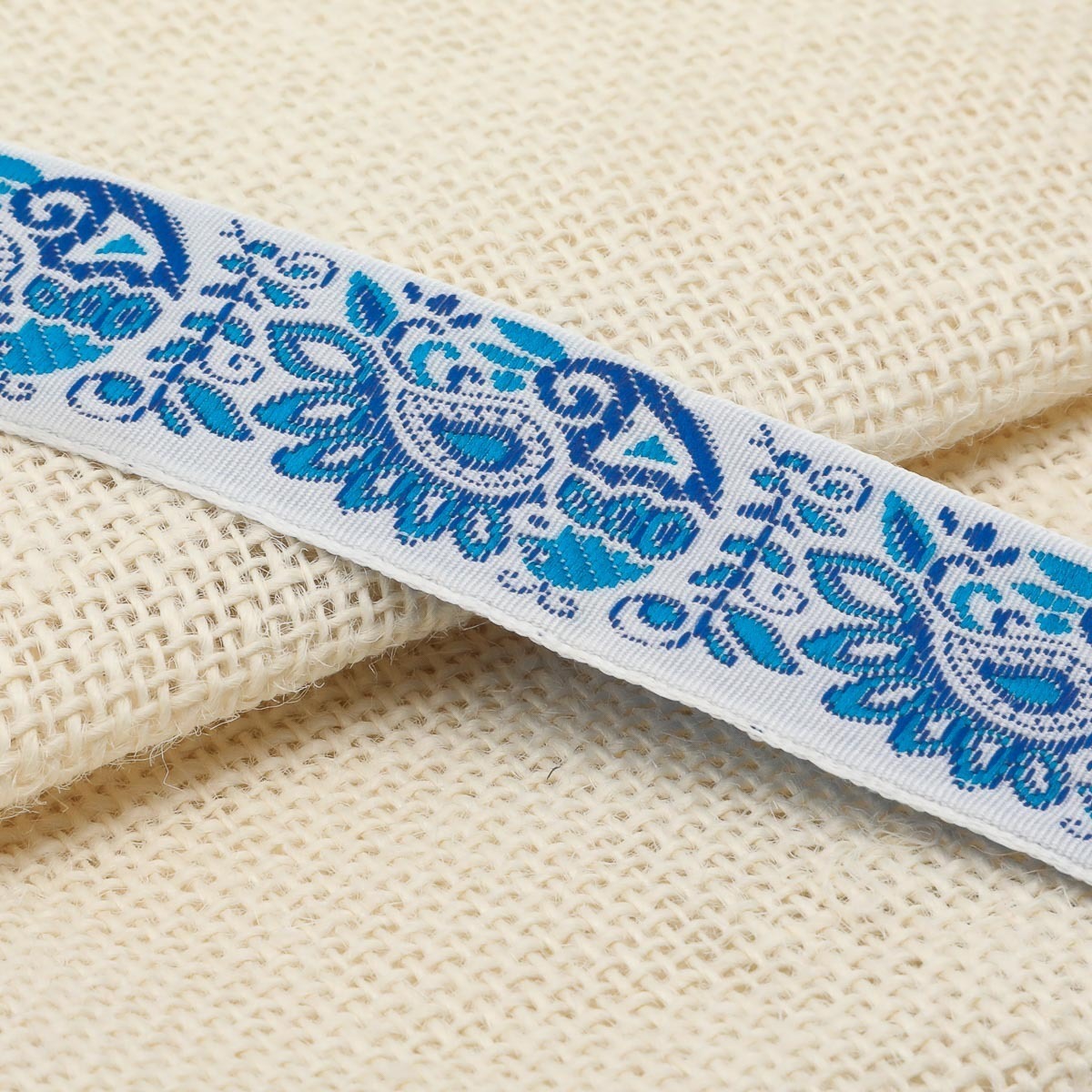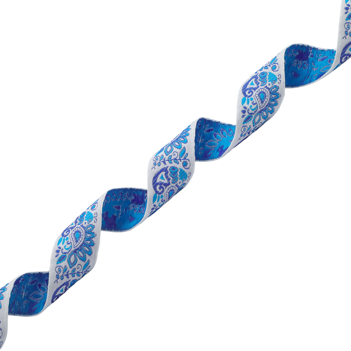 Лента (тесьма) жаккардовая 32.0 мм / 25±1 метров, Славянский орнамент Оберег, рис.9017 (4 белый/синий/голубой) С3774Г17