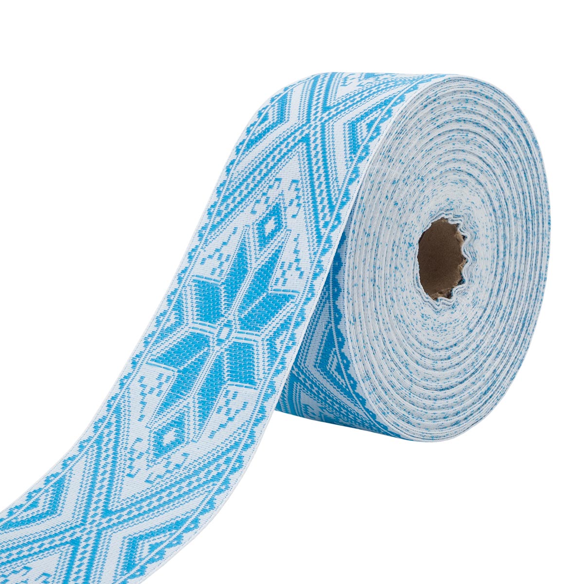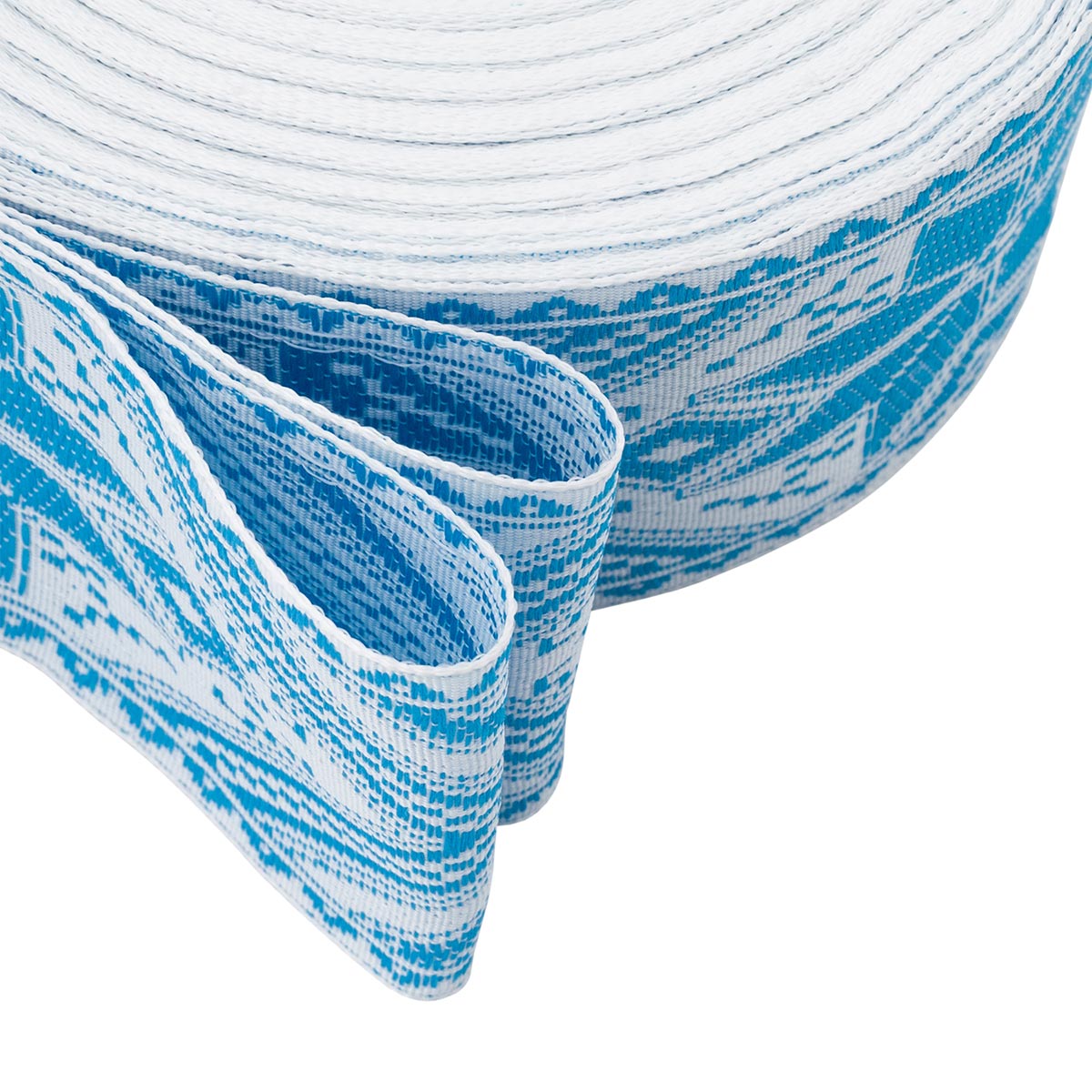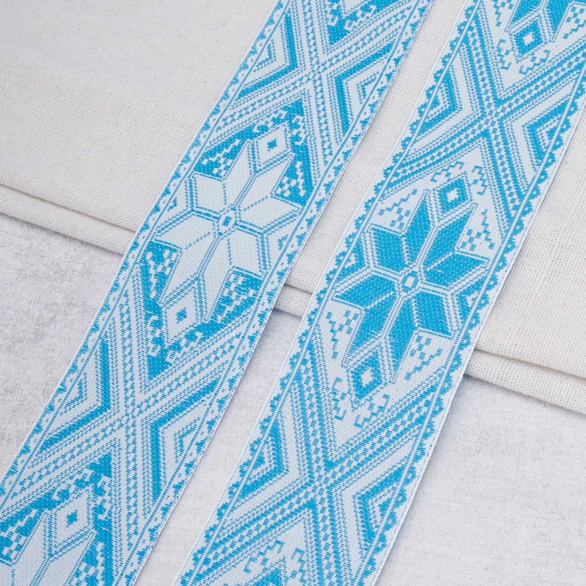 Лента (тесьма) жаккардовая 50.0 мм / 25 метров, Славянский орнамент Оберег, рис.9466, белый / голубой, С3775Г17