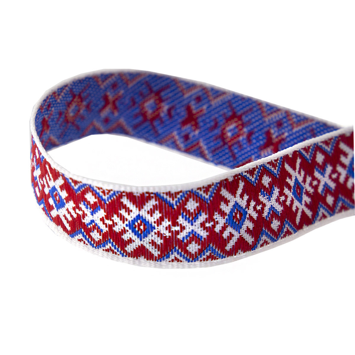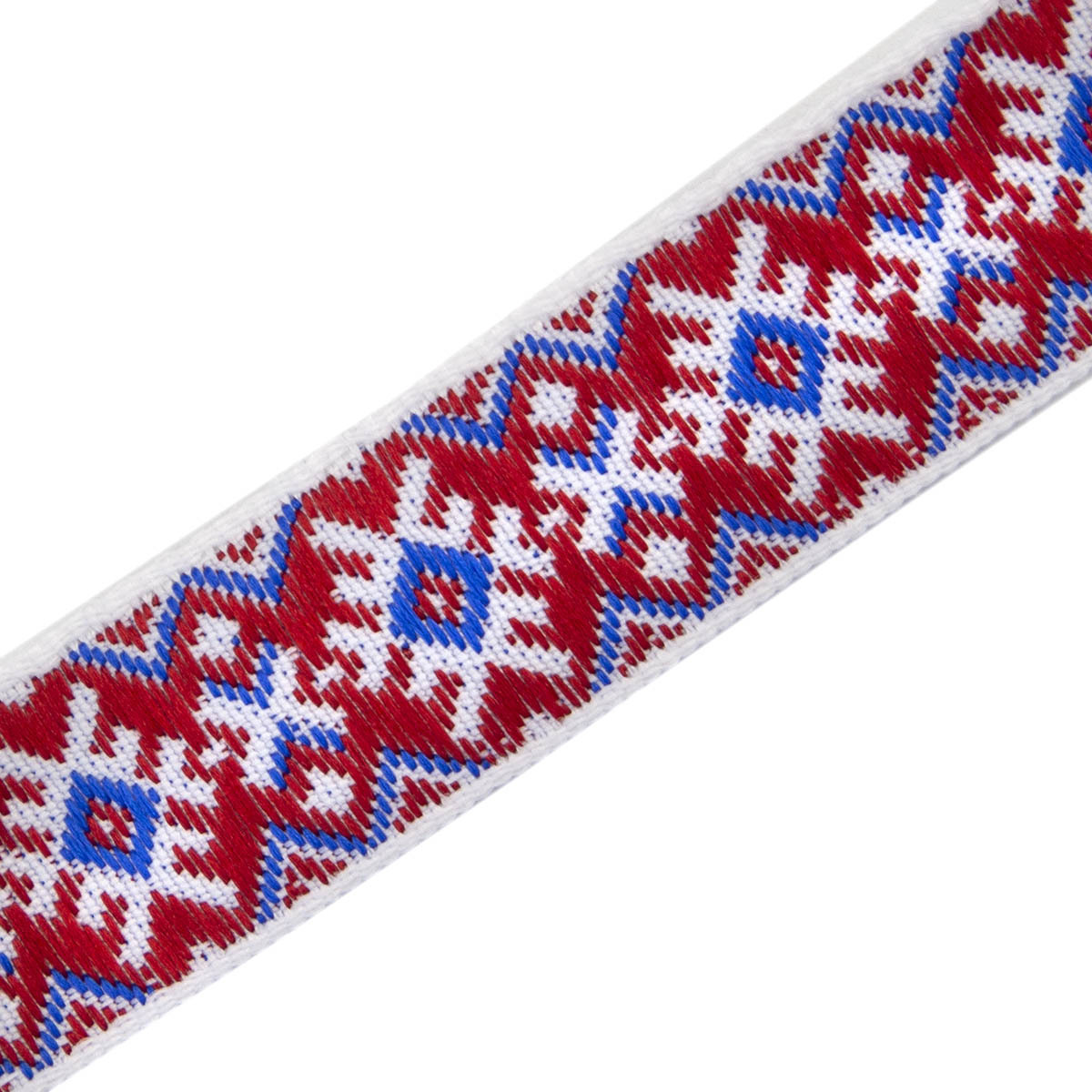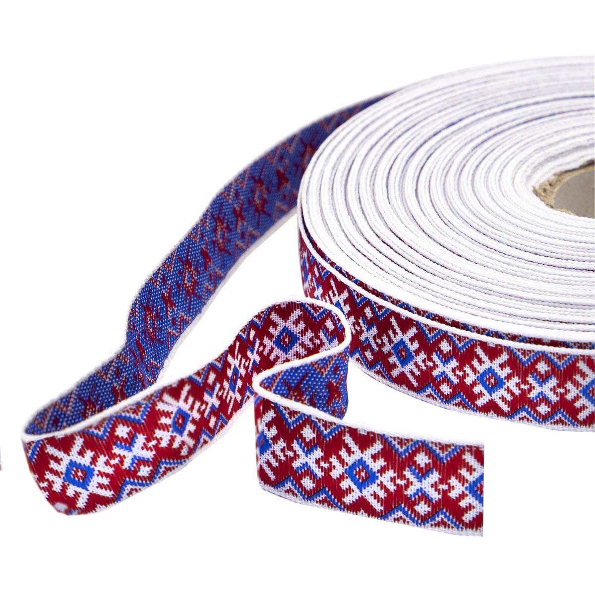 Лента (тесьма) жаккардовая 18.0 мм / 25±1 метров, Славянский орнамент Оберег, рис.9651 (1 белый/красный/синий) С3771Г17
