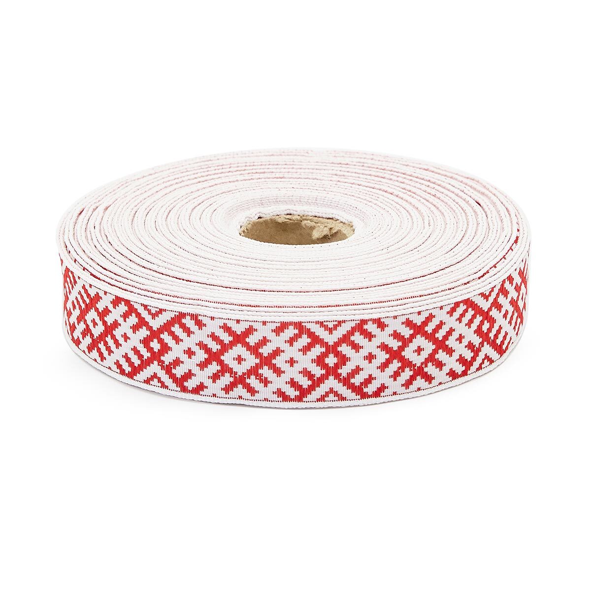 Лента (тесьма) жаккардовая 24.0 мм / 25±1 метров, Славянский орнамент Оберег, рис.9700 (1 красный/белый) С3772Г17