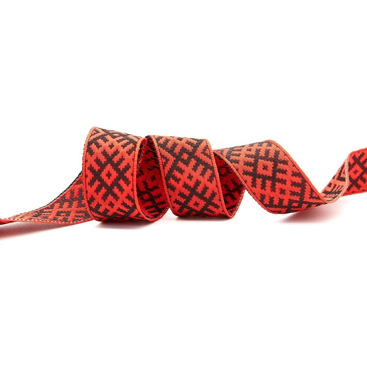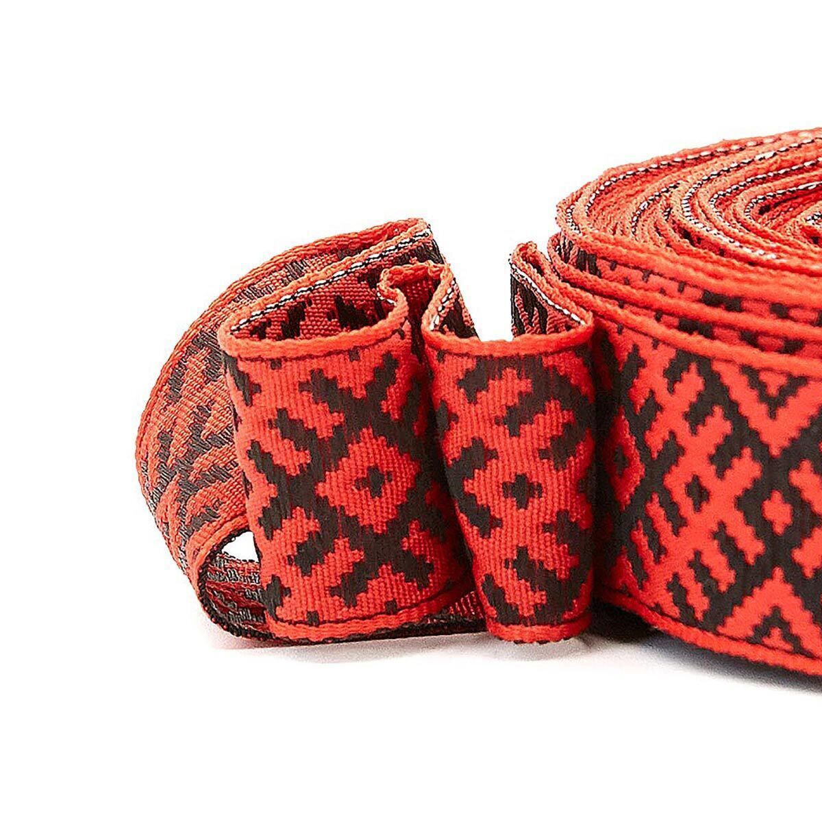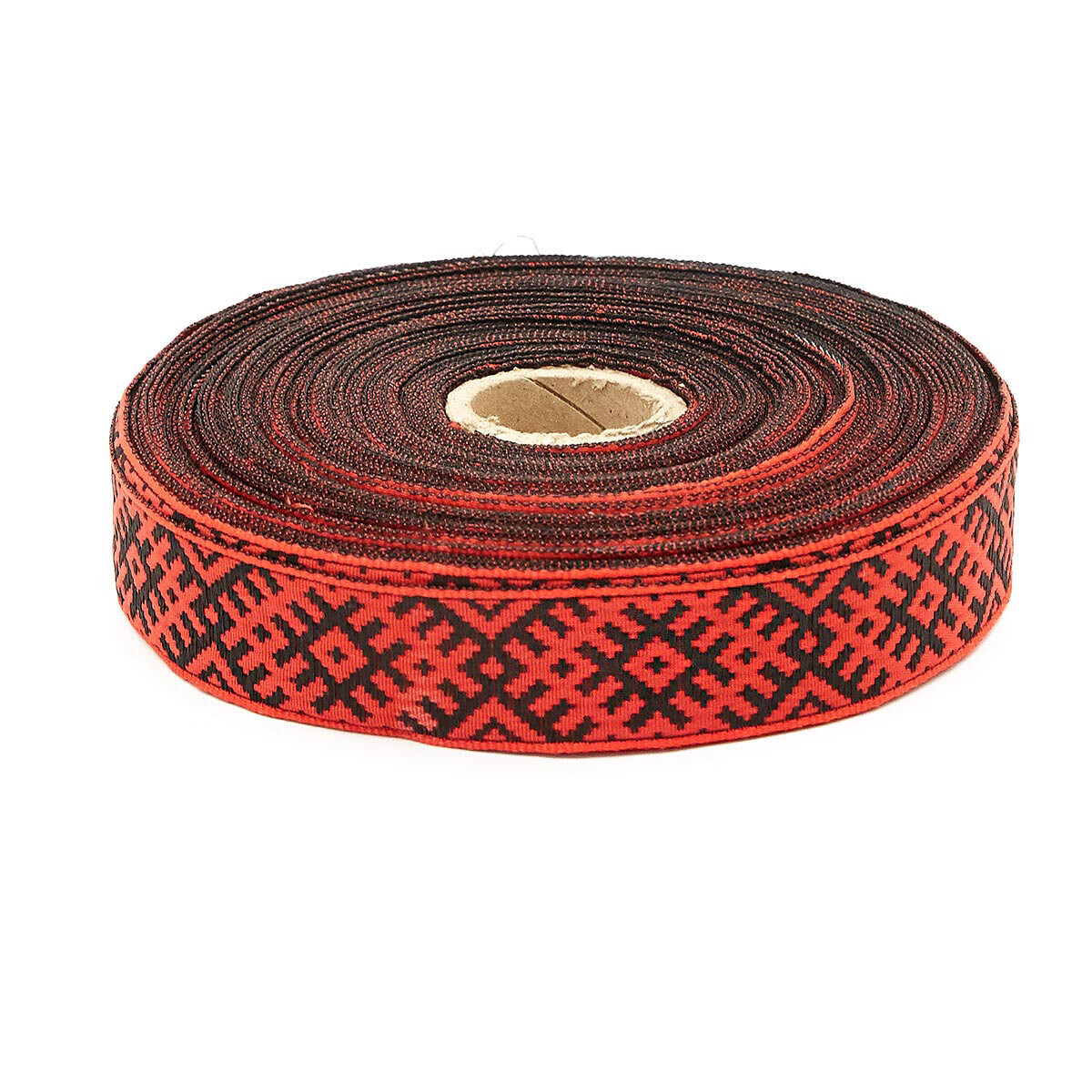 Лента (тесьма) жаккардовая 24.0 мм / 25±1 метров, Славянский орнамент Оберег, рис.9700 (5 красный/черный) С3772Г17