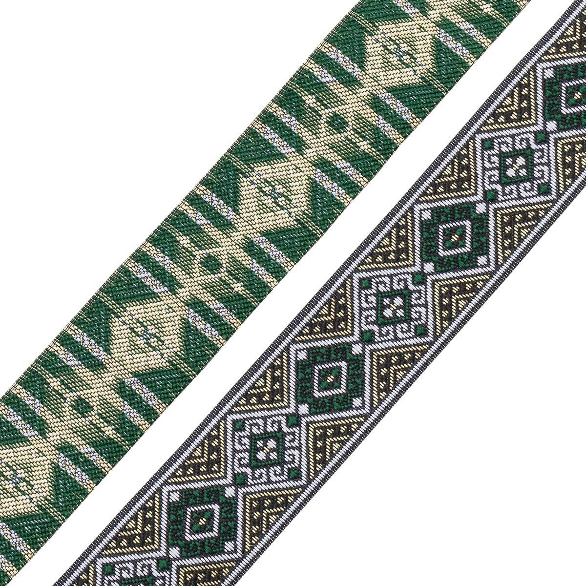 Лента (тесьма) жаккардовая 35.0 мм / 7 метров, золото/ т.зеленый, 4101-1