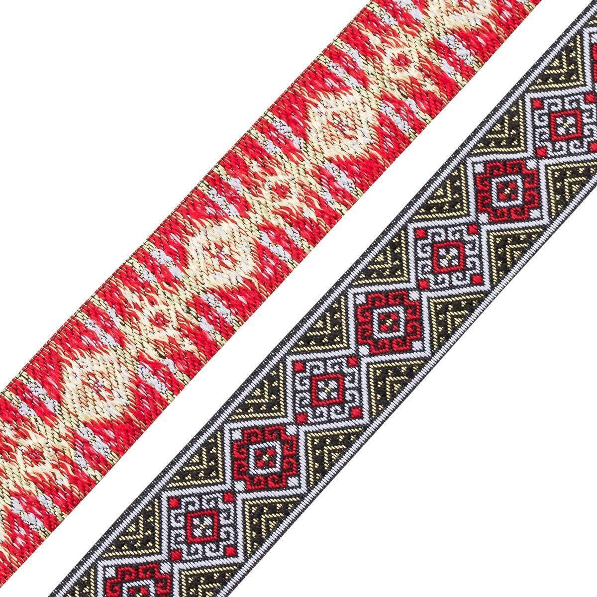 Лента (тесьма) жаккардовая 35.0 мм / 7 метров, золото/красный, 4101-1