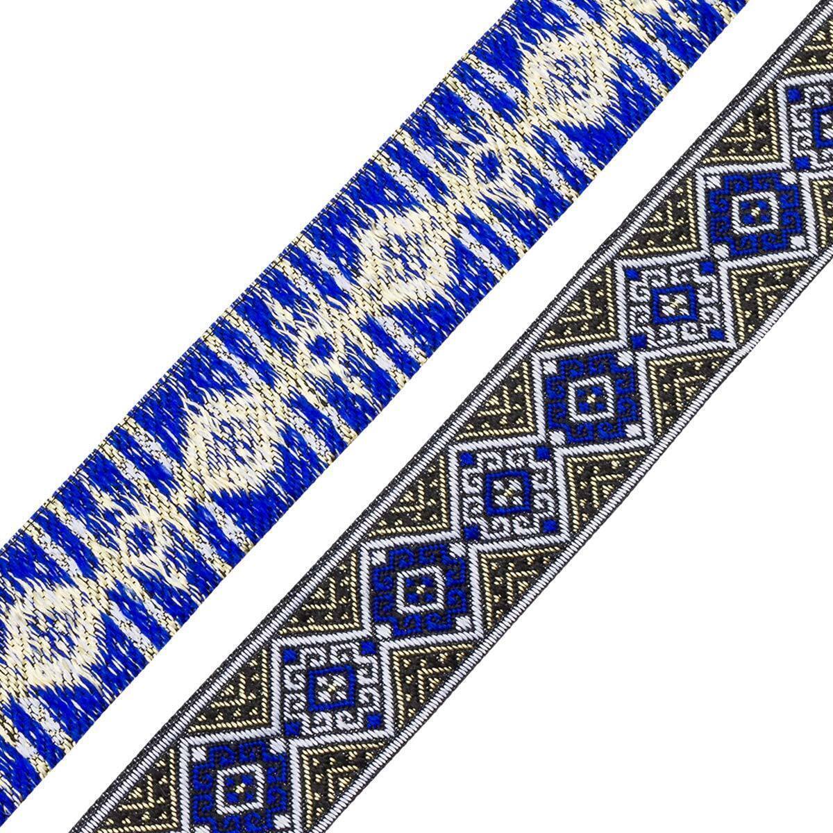 Лента (тесьма) жаккардовая 35.0 мм / 7 метров, золото/синий, 4101-1