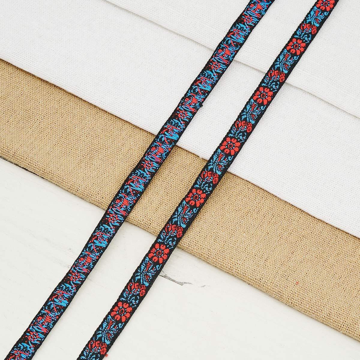 Лента (тесьма) жаккардовая 10.0 мм / 20.12 метра, черный/красный, 1172