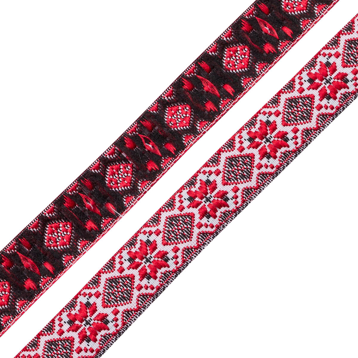 Лента (тесьма) жаккардовая 15.0 мм / 18.29±1 метров, белый, красный, с06418