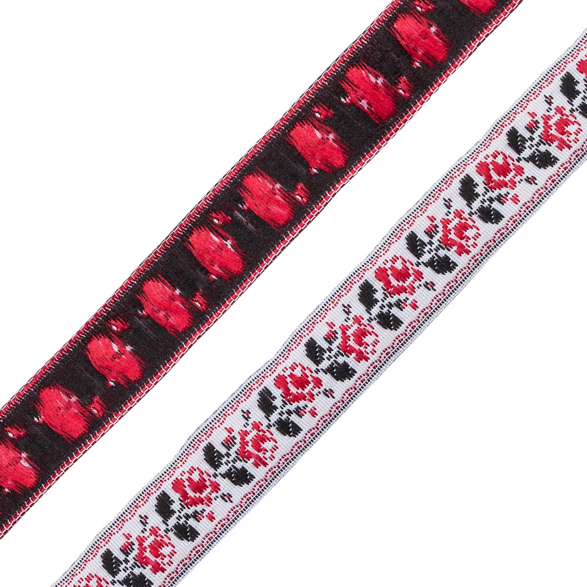 Лента (тесьма) жаккардовая 15.0 мм / 20±1 метров, белый/ красный, 8А207