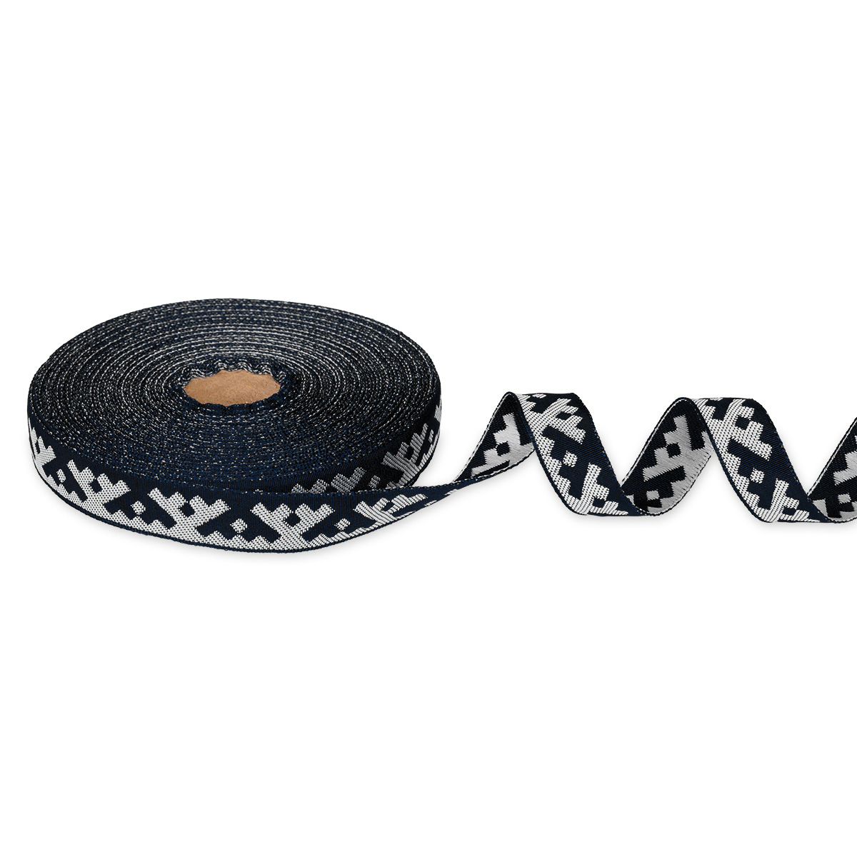 Лента (тесьма) жаккардовая 18.0 мм / 25±1 метров, Орнамент для северных народов, рис 6753 черный-белый, Gamma С3771