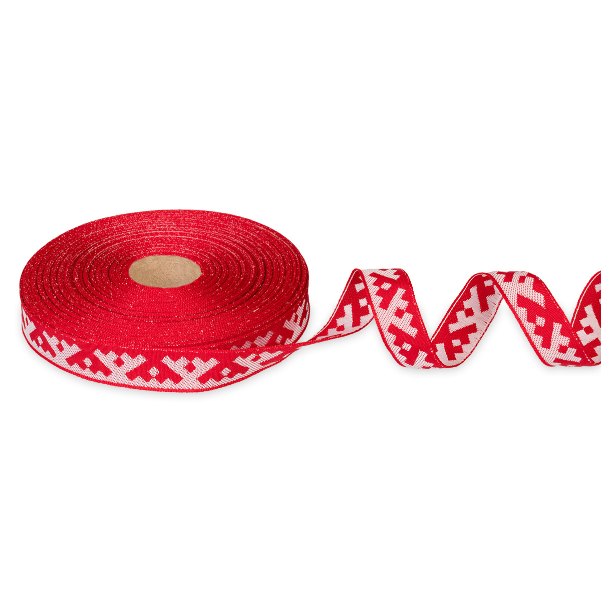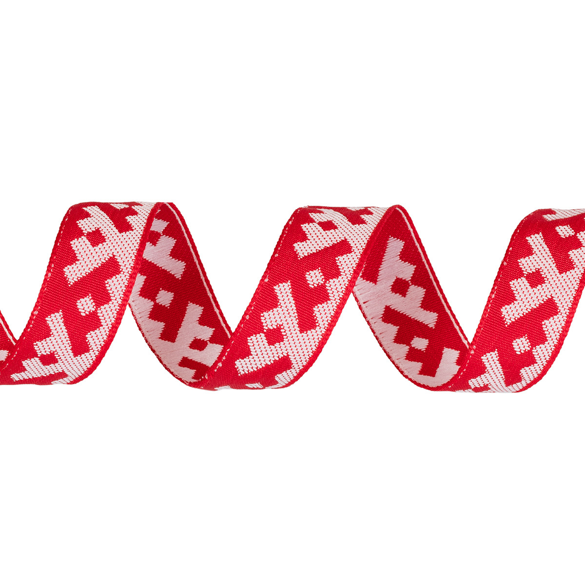 Лента (тесьма) жаккардовая 18.0 мм / 25±1 метров, Орнамент для северных народов, рис 6753 красный-белый, Gamma С3771